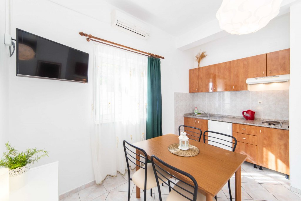 Villa Mila Mare provides everything you will need during your vacation. In its tastefully decorated interior, it consists of 5 fully equipped apartments. One of the amazing, near the beach apartments, is a cute, space full apartment with one bedroom, fully equipped kitchen with a dining room, a living room with a recliner chair for one person, and a sofa bed for two. The villa offers a private parking spot, pool, and grill available to all guests.