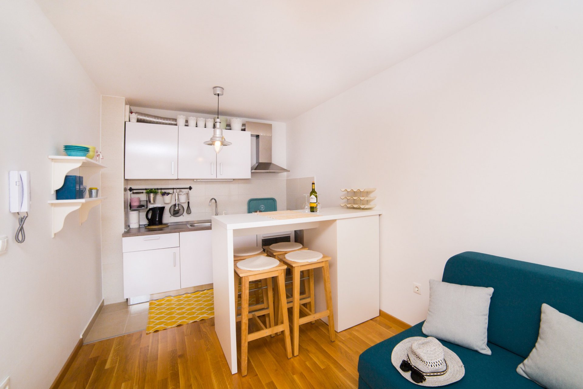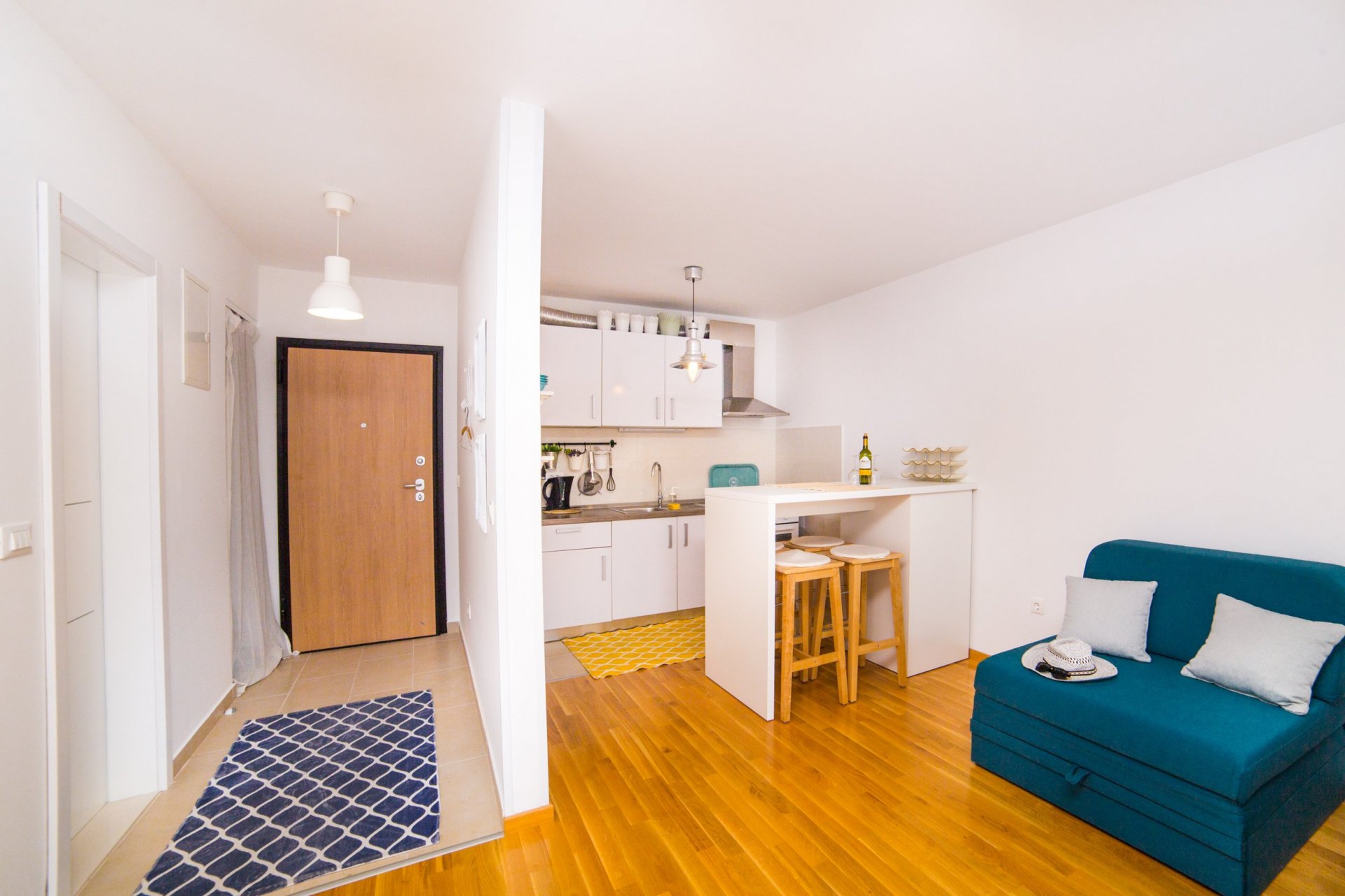 Studio Apartment Blue Lagoon is situated in a beautiful coastal city Makarska, surrounded by Mountain Biokovo and magnificent Islands. The property is located between Split and Dubrovnik with easy access to nearby islands ( Hvar, Korčula, Brač). Its location makes Makarska an ideal base for exploring central and South Dalmatia, with most attractions within one hour drive. Also, pleasant ambient and great location are the perfect combinations for an ideal vacation in beautiful Makarska. This Studio Apartment with Balcony and Sea View features a living room with a sofa bed, WiFi, Air-conditioning, and a seating area with satellite TV. The kitchen is equipped with a Stove Top, Refrigerator, Freezer, and Water Kettle. The bathroom provides a Shower Cabin, free toiletries, and a Washing machine. Balcony with an outdoor seating area offers breathtaking sea and city views. Ironing facilities are available. Parking is free next to the house with easy access to the main road towards Split or Dubrovnik. The nearest beach is 800 m away from the accommodation, the nearest Restaurant is 200 m away. The bus stop is ten minutes walking distance from the apartment. The tourist info office, ATM, Exchange office, Supermarket, Grocery market are 200 m away. Ferry Port is 1 km away. Split Airport 64 km away, Zadar Airport 150 km, and Mostar Airport (BiH) 66 km away. The entrance to Highway Ploče is 40 km and the entrance to Highway Makarska is 10 km away. Studio Apartment Blue Lagoon is situated in the beautiful coastal city Makarska, surrounded by Mountain Biokovo and magnificent Islands. The property is located between Split and Dubrovnik with easy access to nearby islands ( Hvar, Korčula, Brač). Its location makes Makarska an ideal base for exploring central and South Dalmatia, with most attractions within one hour drive. Also, the pleasant ambient and great location are the perfect combinations for an ideal vacation in beautiful Makarska. This Studio Apartment with Balcony and Sea View features a living room with a sofa bed, WiFi, Air-conditioning, and a seating area with satellite TV. The kitchen is equipped with a Stove Top, Refrigerator, Freezer, and Water Kettle. The bathroom provides a Shower Cabin, free toiletries, and a Washing machine. Balcony with an outdoor seating area offers breathtaking sea and city views. Ironing facilities are available. Parking is free next to the house with easy access to the main road towards Split or Dubrovnik. The nearest beach is 800 m away from the accommodation, the nearest Restaurant is 200 m away. The bus stop is ten minutes walking distance from the apartment. The tourist info office, ATM, Exchange office, Supermarket, Grocery market are 200 m away. Ferry Port is 1 km away. Split Airport 64 km away, Zadar Airport 150 km, and Mostar Airport (BiH) 66 km away. The entrance to Highway Ploče is 40 km and the entrance to Highway Makarska is 10 km away.