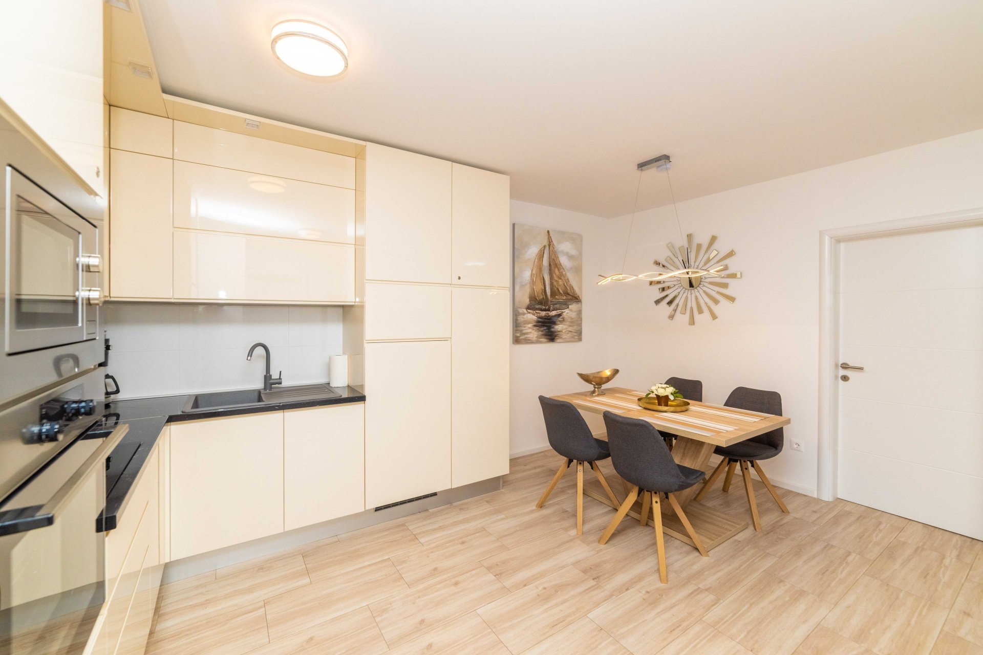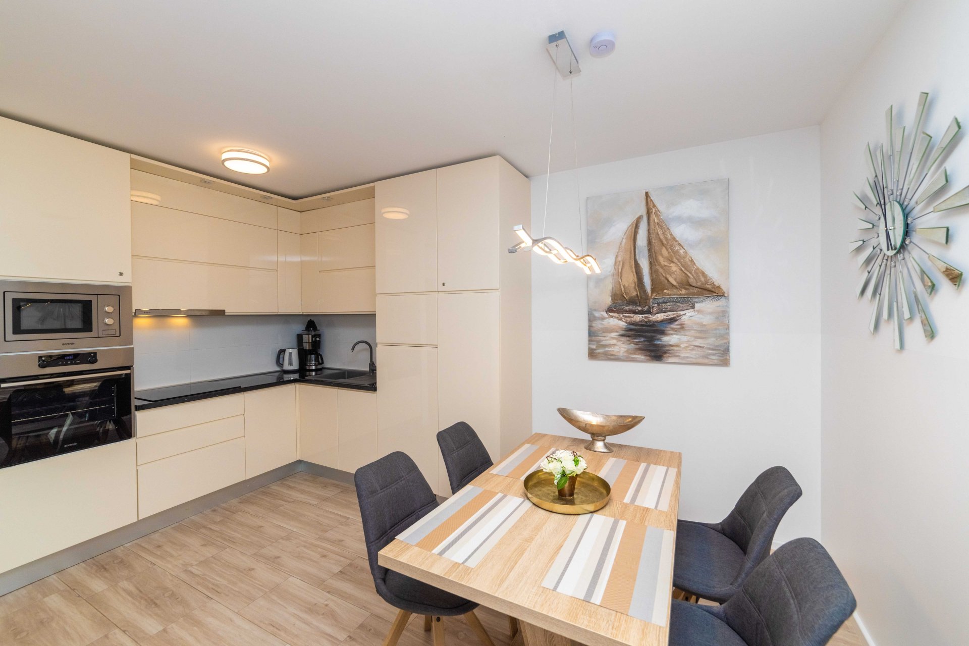 Oven, Stove, Coffee maker, Espresso machine, Dishwasher, Refrigerator, Freezer, Fan / extractor, Toaster, Water kettle, Kitchen utensils provided, Kitchen, Trash cans, Dining area, Dining tableGeneral