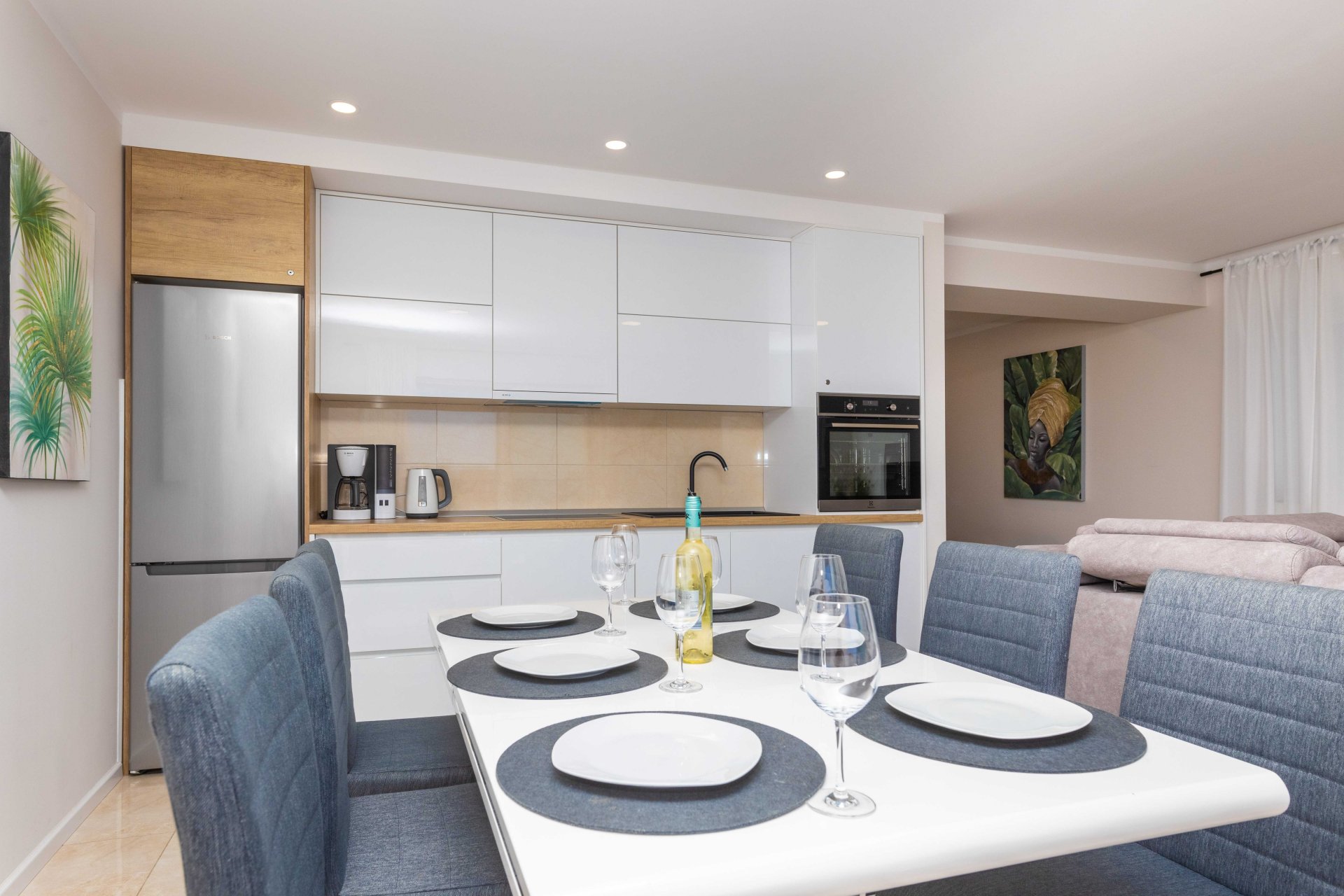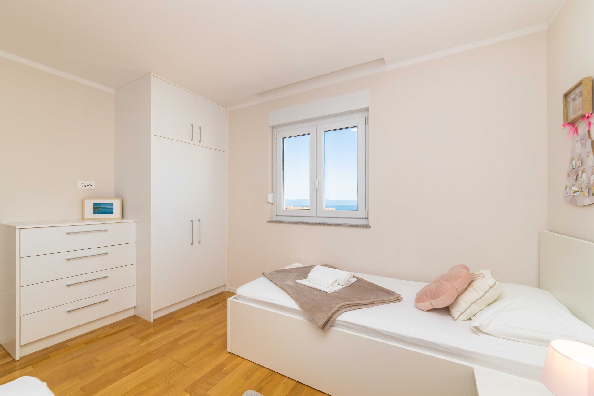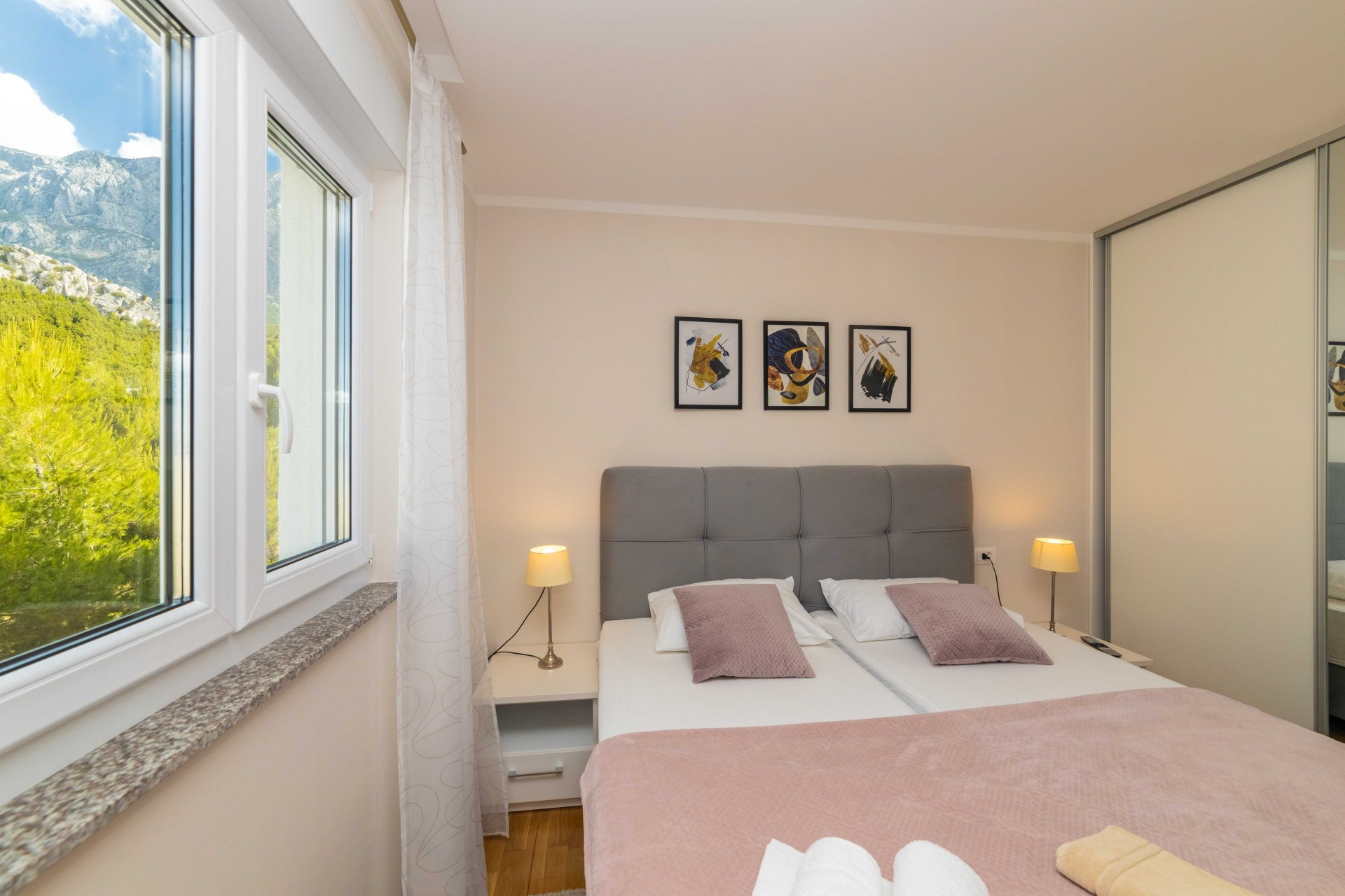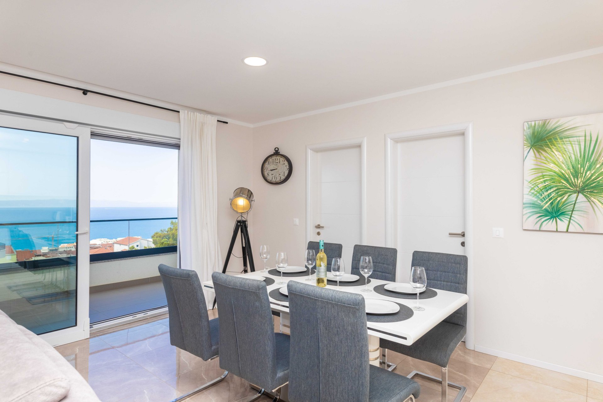 Apartments are located in a beautiful coastal city Makarska, 5 minutes by car from Baška Voda, Tučepi, surrounded by Mountain Biokovo and magnificent Islands. Apartments are located in a Makarska town between Split and Dubrovnik with easy access to nearby islands (Hvar, Korčula, Brač). Its location makes an ideal base for exploring central and South Dalmatia, with most attractions within a 2hrs drive. This Luxury Three Bedroom Apartment with two balconies features everything you need for a relaxing and fun vacation such as spacious three bedrooms and one batroom with shower and one extra toilet, free WiFi, air-conditioning in each room a flat-screen TV, and cable/satellite TV. In its spacious 90 meters square, it contains a fully equipped kitchen with an oven, stove, microwave, coffee maker, dishwasher, water kettle, and refrigerator. Guests can enjoy their stay on a beautiful terrace with outdoor furniture with Sea view or on the balcony. Private parking is provided.