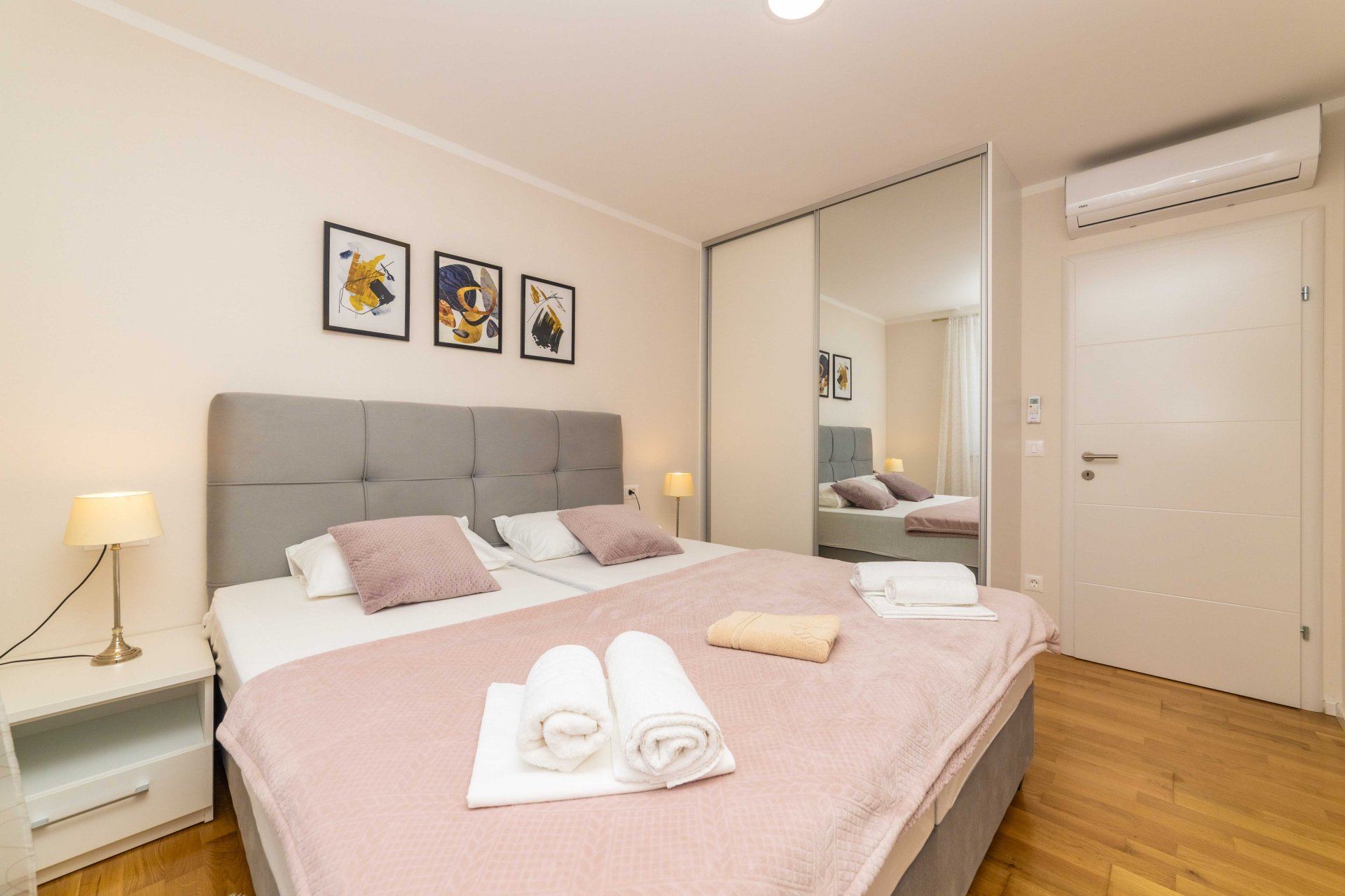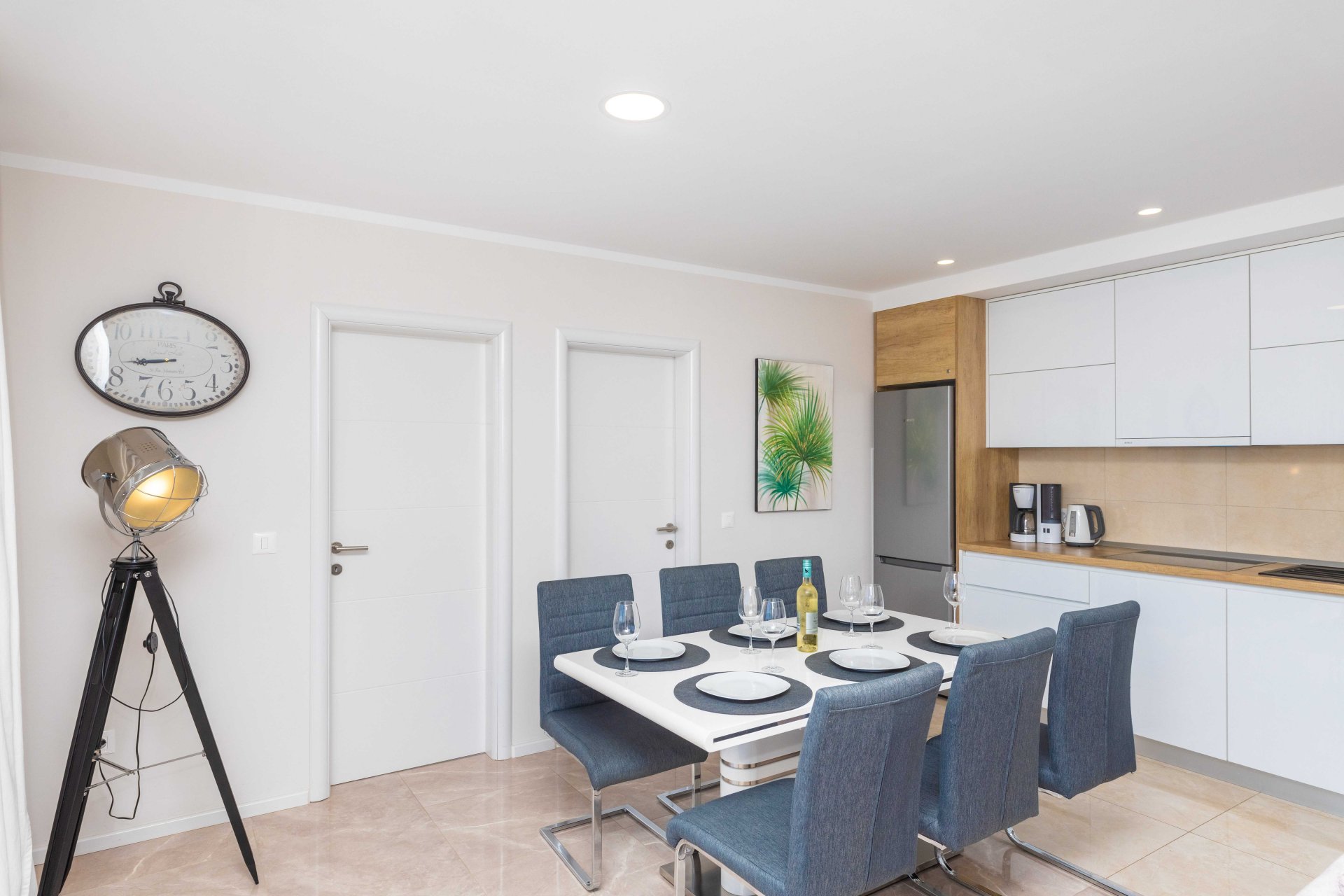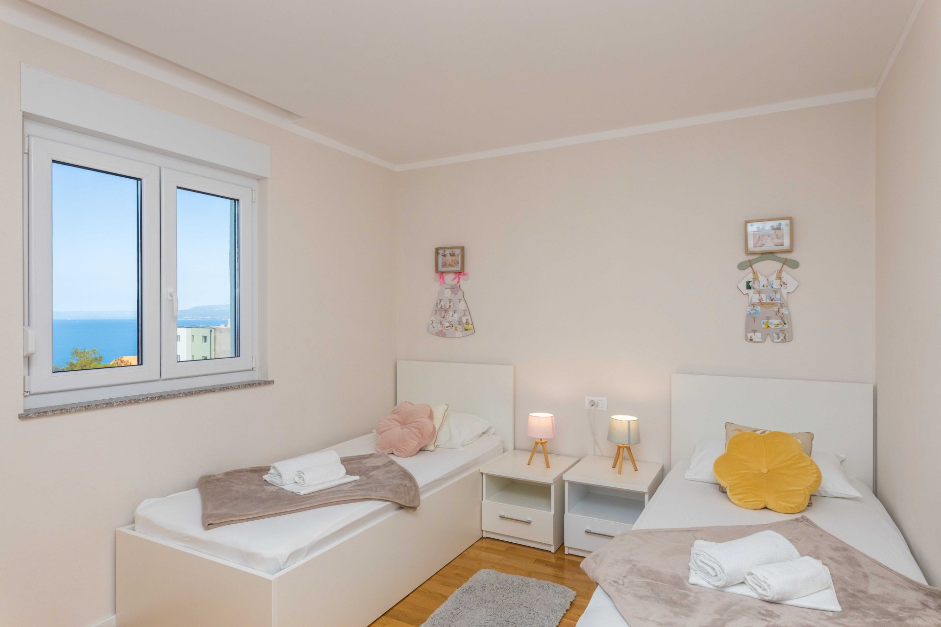 Apartments are located in a beautiful coastal city Makarska, 5 minutes by car from Baška Voda, Tučepi, surrounded by Mountain Biokovo and magnificent Islands. Apartments are located in a Makarska town between Split and Dubrovnik with easy access to nearby islands (Hvar, Korčula, Brač). Its location makes an ideal base for exploring central and South Dalmatia, with most attractions within a 2hrs drive. This Luxury Three Bedroom Apartment with two balconies features everything you need for a relaxing and fun vacation such as spacious three bedrooms and one batroom with shower and one extra toilet, free WiFi, air-conditioning in each room a flat-screen TV, and cable/satellite TV. In its spacious 90 meters square, it contains a fully equipped kitchen with an oven, stove, microwave, coffee maker, dishwasher, water kettle, and refrigerator. Guests can enjoy their stay on a beautiful terrace with outdoor furniture with Sea view or on the balcony. Private parking is provided.