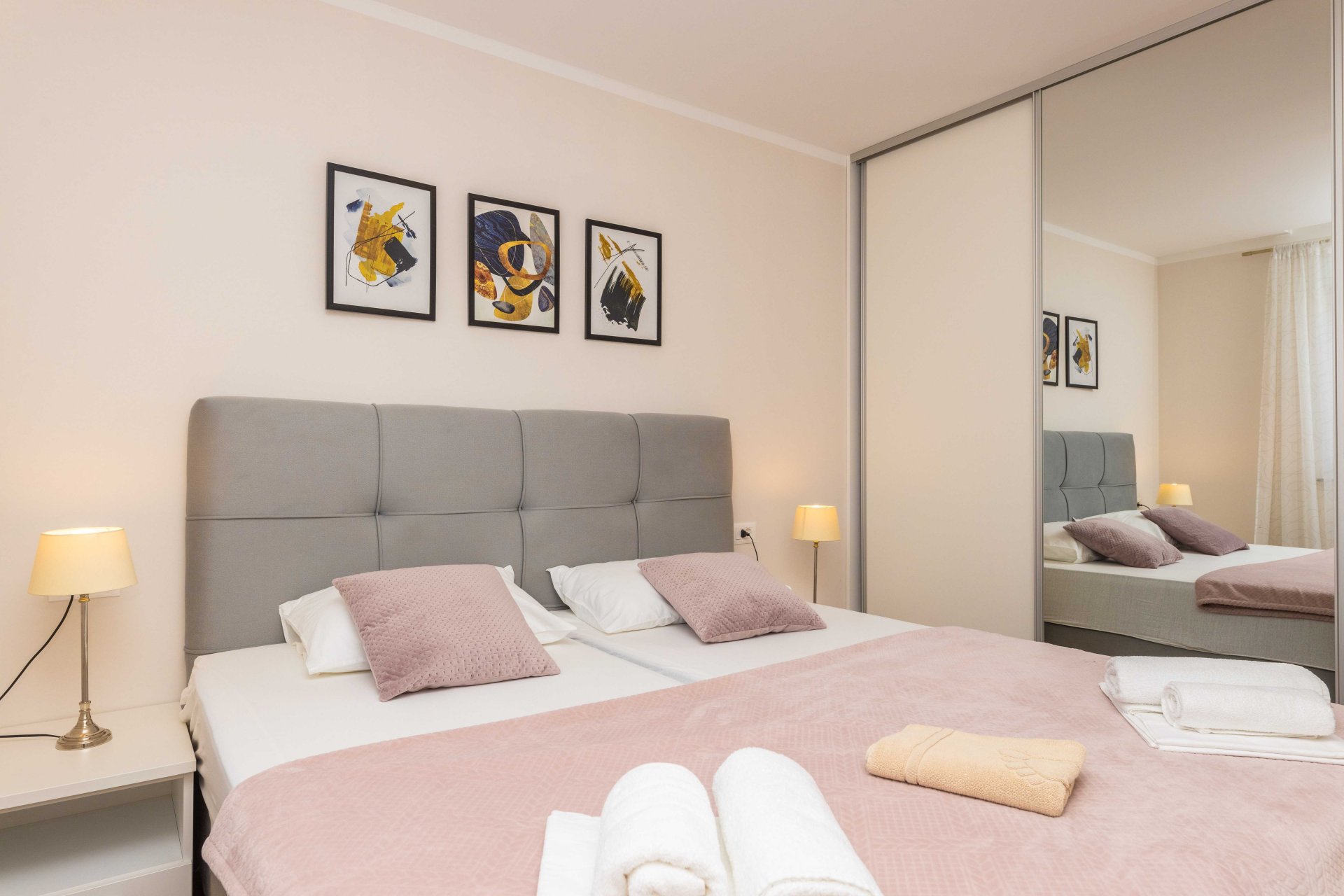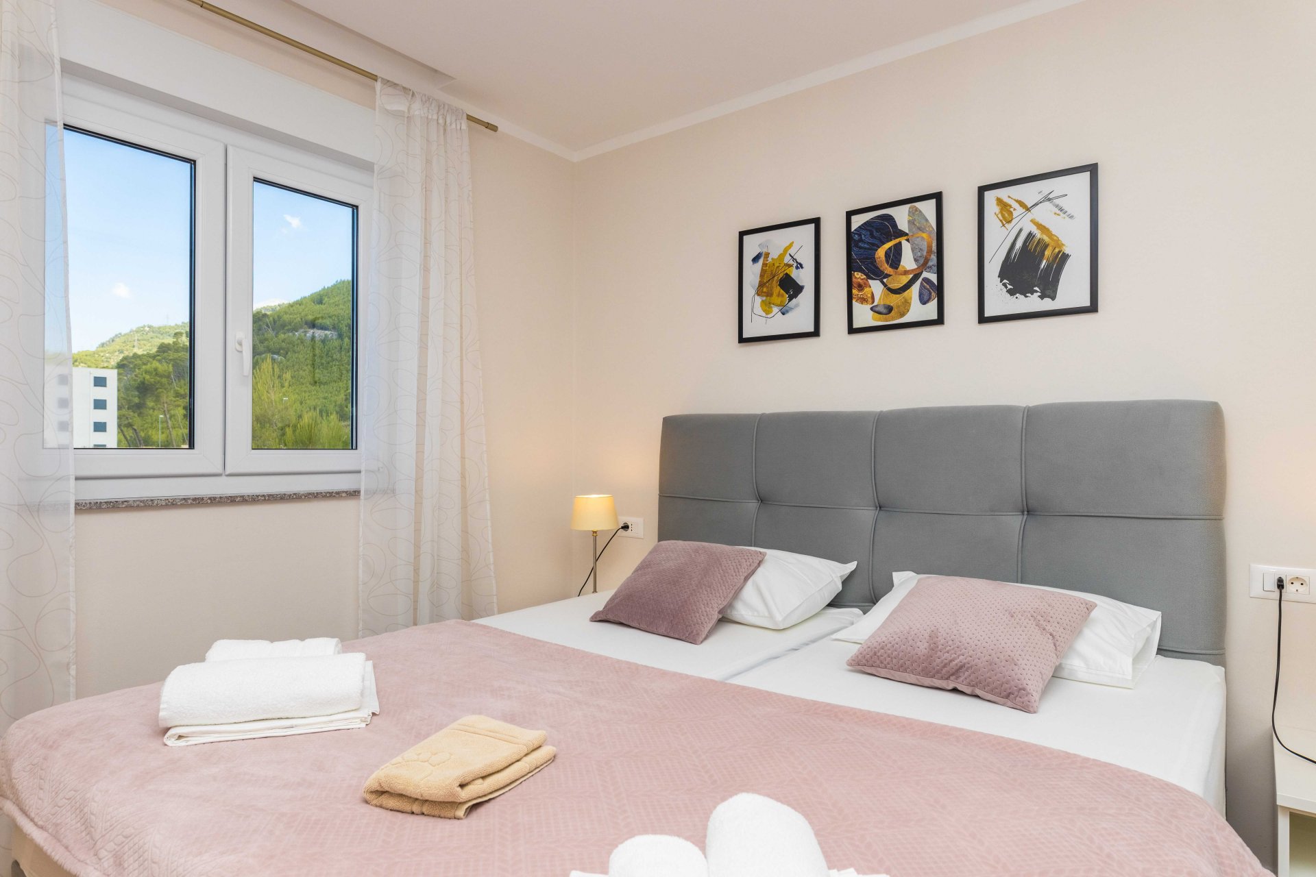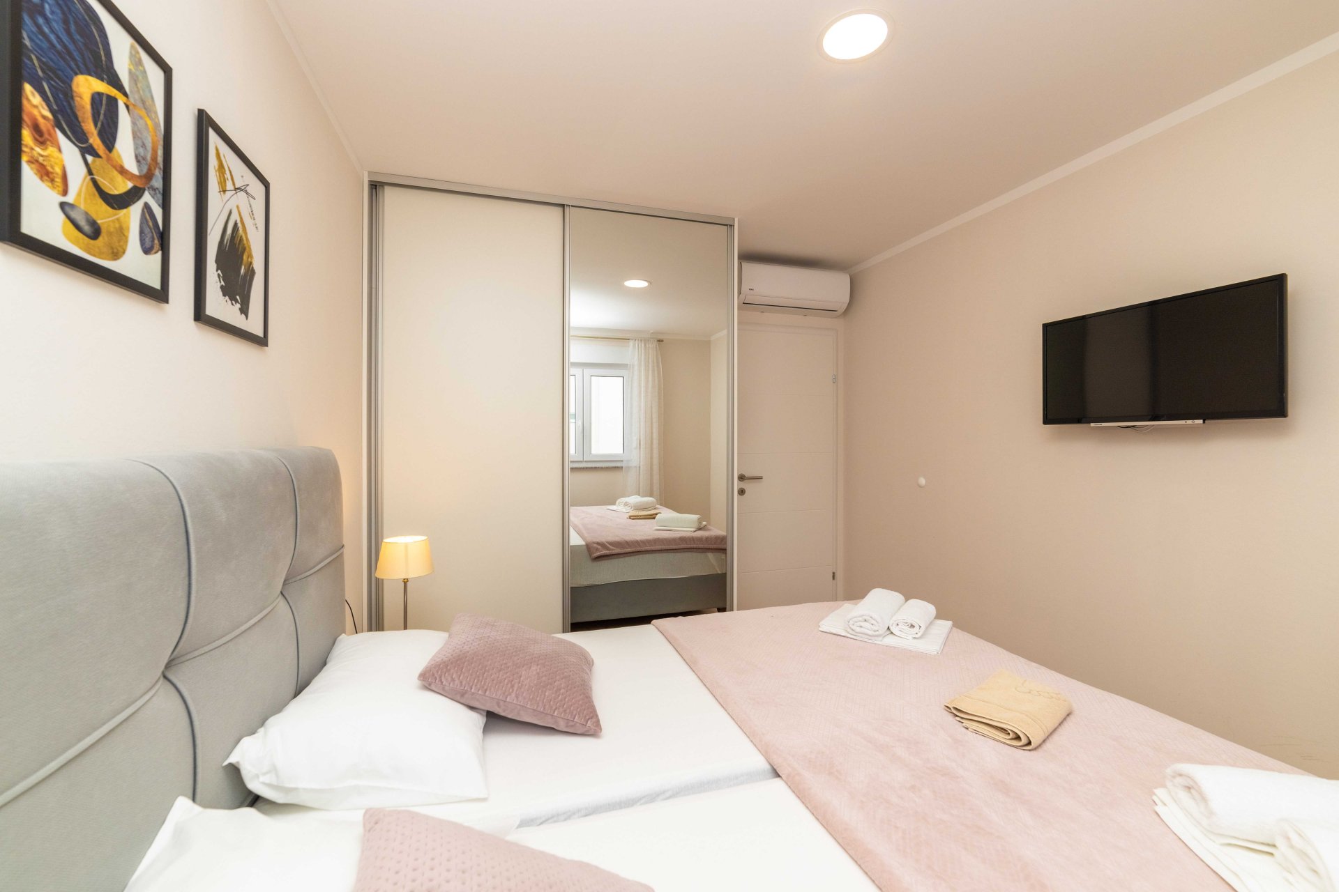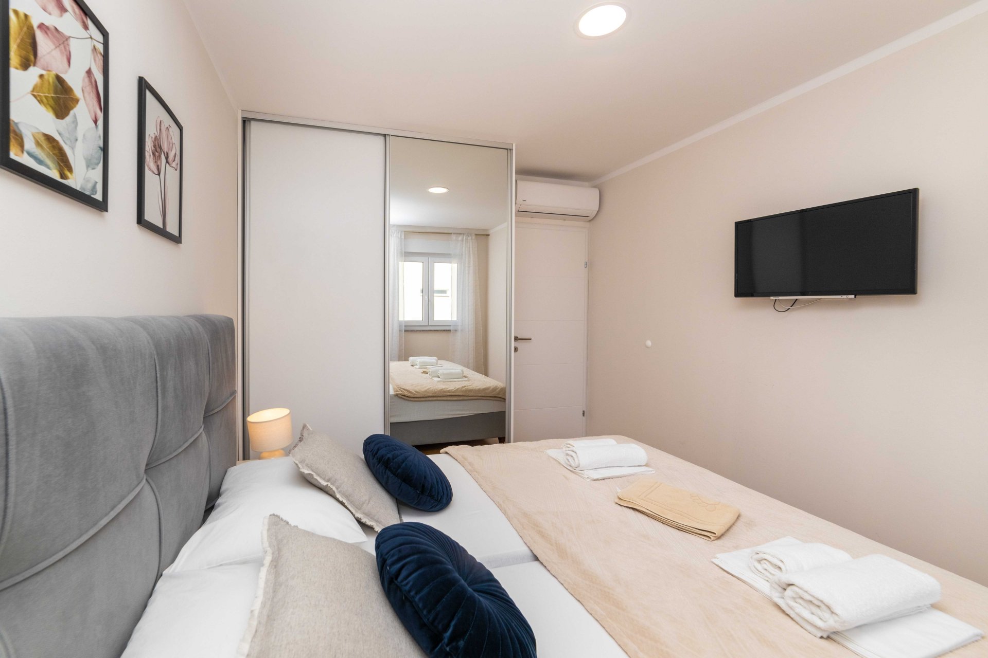 Apartments are located in a beautiful coastal city Makarska, 5 minutes by car from Baška Voda, Tučepi, surrounded by Mountain Biokovo and magnificent Islands. Apartments are located in a Makarska town between Split and Dubrovnik with easy access to nearby islands (Hvar, Korčula, Brač). Its location makes an ideal base for exploring central and South Dalmatia, with most attractions within a 2hrs drive. This Luxury Three Bedroom Apartment with two balconies features everything you need for a relaxing and fun vacation such as spacious three bedrooms and one batroom with shower and one extra toilet, free WiFi, air-conditioning in each room a flat-screen TV, and cable/satellite TV. In its spacious 90 meters square, it contains a fully equipped kitchen with an oven, stove, microwave, coffee maker, dishwasher, water kettle, and refrigerator. Guests can enjoy their stay on a beautiful terrace with outdoor furniture with Sea view or on the balcony. Private parking is provided.