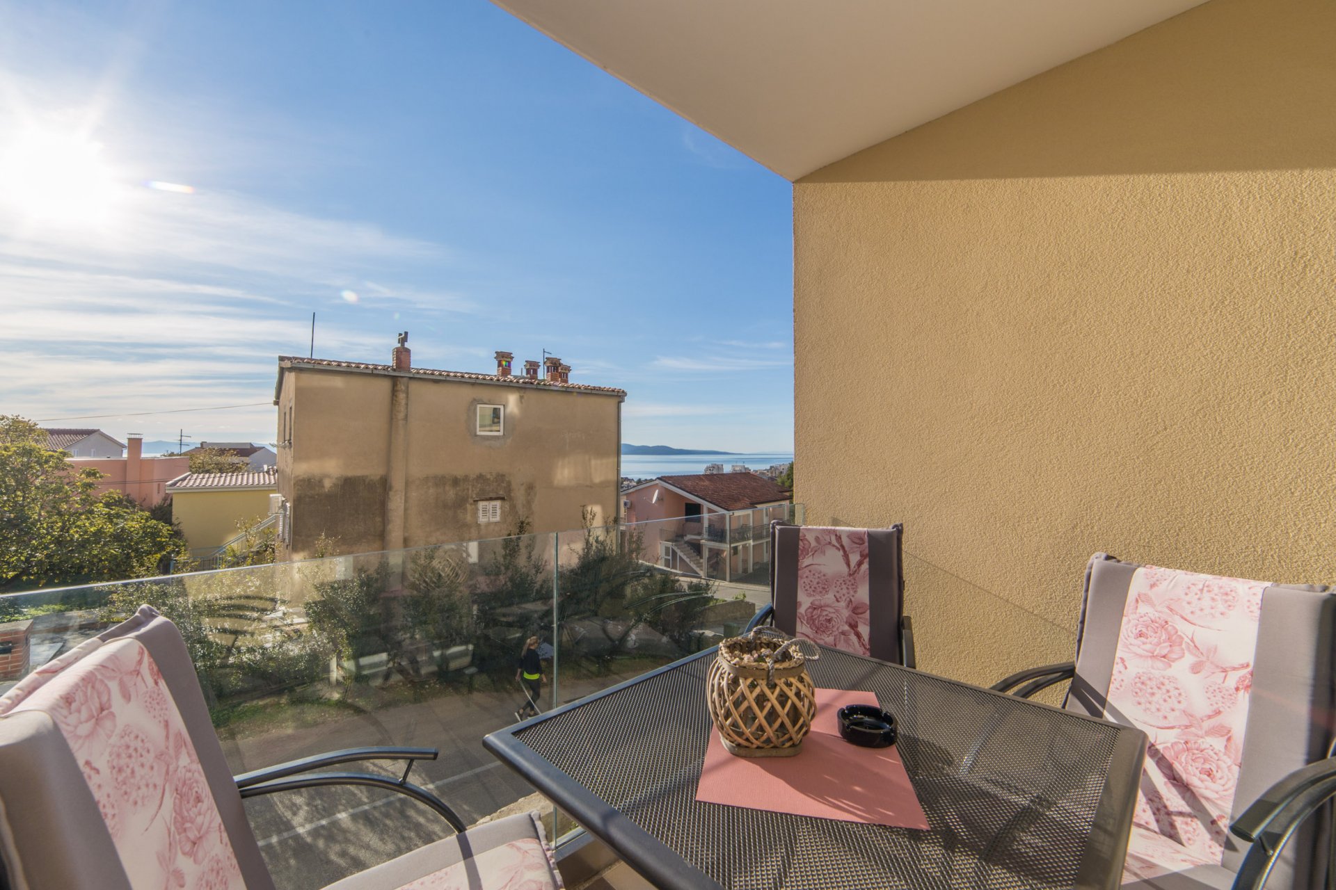 This charming, two-bedroom apartment offers everything you might need for a relaxing and exciting vacation. You will have free WiFi, Satellite channels, Bathroom with Shower, First aid kit, Towels, Linen, Kitchen, Refrigerator, Freezer, Dining area, Oven, Kitchenware, Coffee machine, Toaster oven, water kettle, Stove Top, Terrace with Sea view, Parking, Trash cans, Sofa bed, Clothes rack, Hardwood/Parquet floors, Wardrobe/Closet.