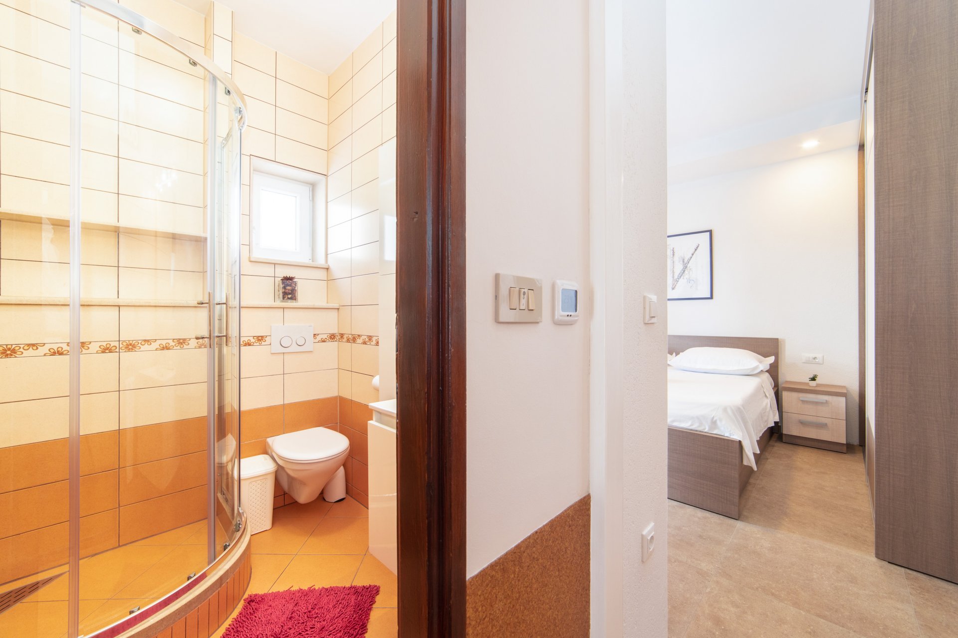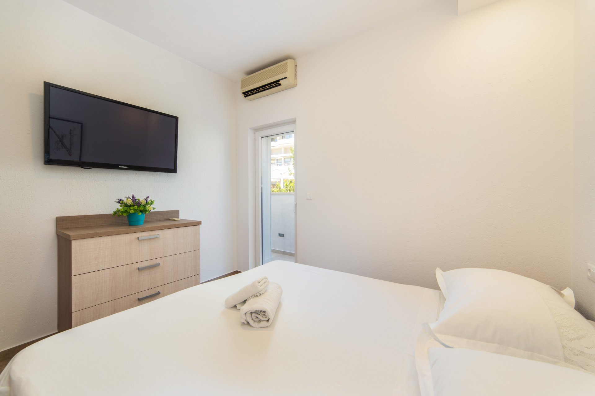 Apartment LaLu is situated in the city Makarska, surrounded by Mountain Biokovo and magnificent Islands. Property is located between Split and Dubrovnik with easy access to nearby islands ( Hvar, Korčula, Brač). Its location makes Makarska an ideal base for exploring central and South Dalmatia, with most attractions within one hour's drive. Also, a pleasant ambiance and great location are the perfect combinations for an ideal vacation in beautiful Makarska. The apartment contains free WiFi, flat-screen SAT TV, as well as an air conditioner. In its 60 m square, it consists of a fully equipped kitchen that will provide you stove, water kettle, freezer, coffee machine, and refrigerator. There is also an en-suite bathroom with a toilet and shower in one of the bedrooms and a private bathroom at guests' disposal which contains a shower, hairdryer, cleansers, and washing machine.