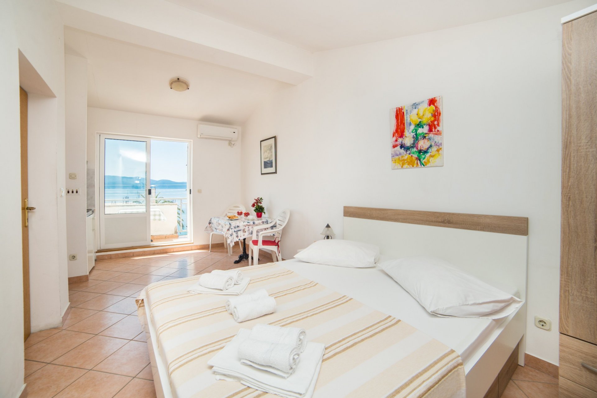 This Comfort Studio Apartment Mirna Center & Beach is situated in a beautiful coastal city Gradac, surrounded by Mountain Biokovo and magnificent Islands. Property is located between Split and Dubrovnik with easy access to nearby Islands ( Hvar, Korčula, Brač). Its location makes Gradac ideal base for exploring Central and South Dalmatia, with most attractions within one hour drive. Also pleasant ambience and great location are the perfect combination for an ideal vacation in beautiful Gradac. This Studio Apartment with Balcony and Sea View features living room with sofa bed, WiFi, Air-conditioning and seating area with satellite TV. Kitchen is equipped with an Stove Top, Refrigerator, Freezer and Water Kettle. Bathroom provides a Shower Cabin and free toiletries. Balcony with an outdoor seating area offers breathtaking sea view. Ironing facilities are available. Parking is free next to the house with easy access to main road towards Split or Dubrovnik. Nearest beach is 15 m away from the accommodation, as is the nearest Restaurant. Bus stop is ten minutes walking distance from the apartment. Tourist info office, ATM, Exchange office, Supermarket, Grocery market are 20 m away. Ferry Port is 12 km away. Split Airport 120 km away, Zadar Airport 250 km and Mostar Airport (BiH) 115 km away. Entrance to Highway Ploče is 15 km and entrance to Highway Makarska is 40 km away. This Studio Apartment Mirna Center&Beach features WiFi, Air-conditioning and seating area with satellite TV. Kitchen is equipped with an Stove Top, Refrigerator, Freezer and Water Kettle. Bathroom provides a Shower Cabin and free toiletries. Balcony with an outdoor seating area offers breathtaking sea view. Ironing facilities are available. Parking is free next to the house with easy access to main road towards Split or Dubrovnik.