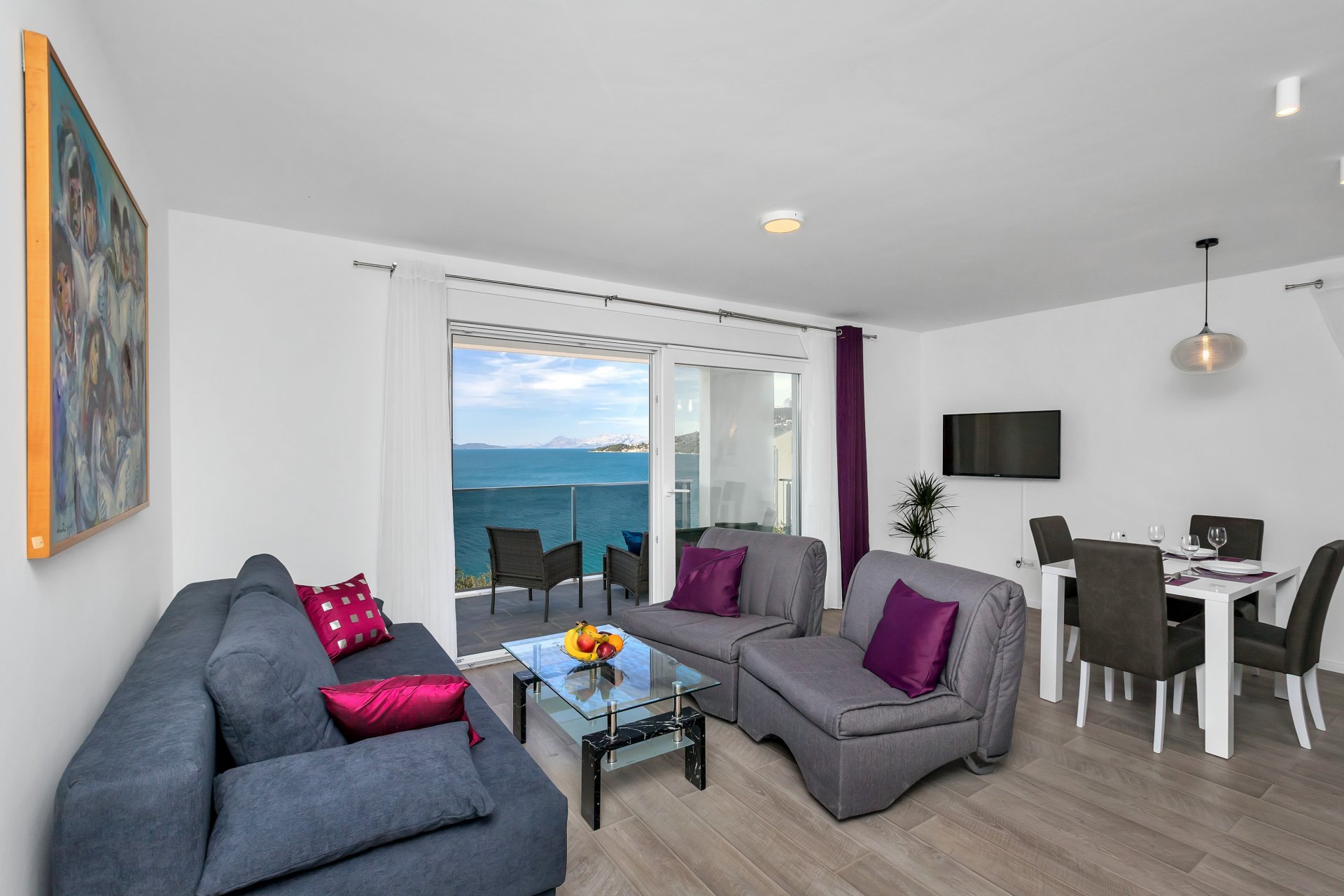 Villa Mila Mare provides everything you will need during your vacation. In its tastefully decorated interior, it consists of 5 fully equipped apartments. One of the amazing, near the beach apartments, is a cute, space full apartment with one bedroom, fully equipped kitchen with a dining room, a living room with a recliner chair for one person, and a sofa bed for two. The villa offers a private parking spot, pool, and grill available to all guests.