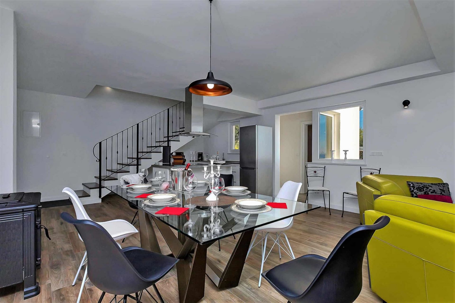 Oven, Stove, Coffee maker, Dishwasher, Refrigerator, Freezer, Fan / extractor, Toaster, Water kettle, Kitchen utensils provided, Kitchen, Trash cans, Dining area, Dining tableGeneral