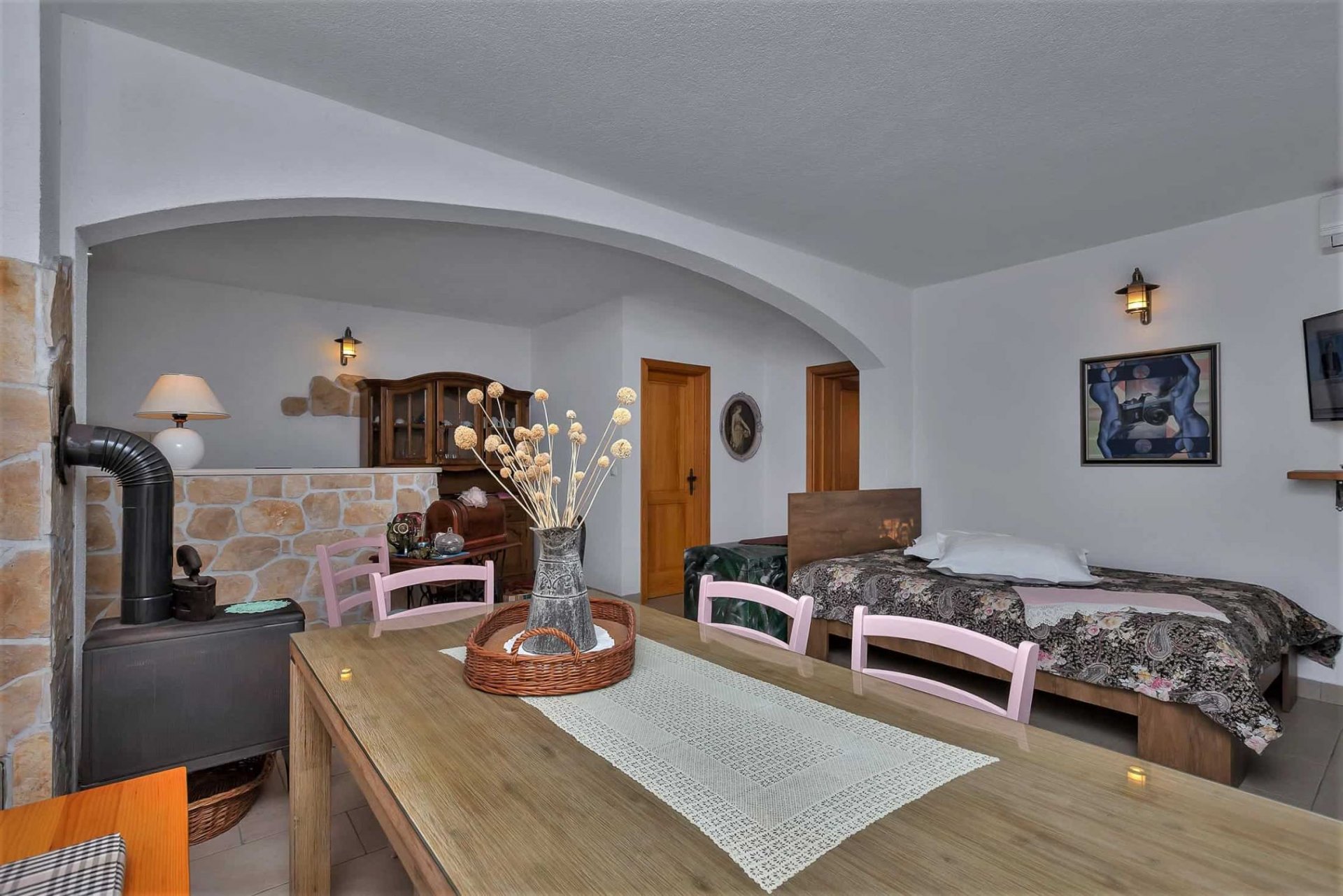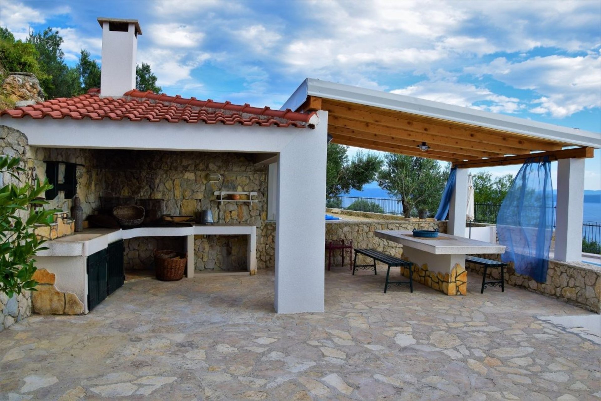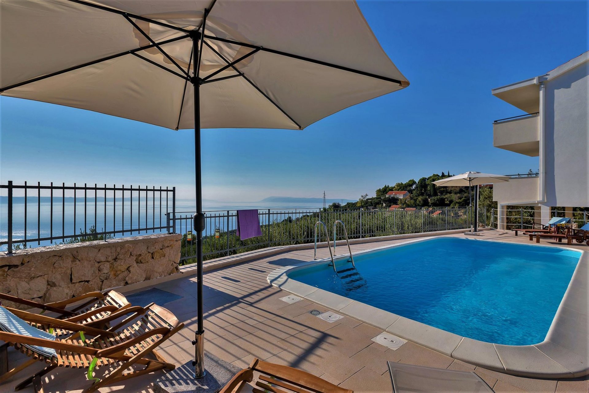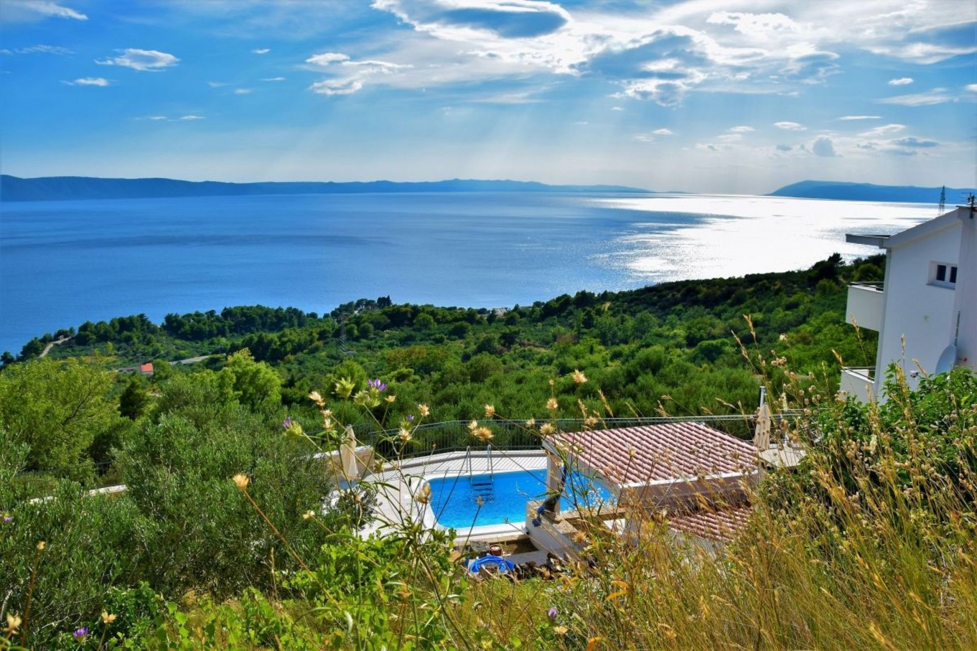 The villa is nestled in a peaceful setting in Gornja Podgora near Makarska, offering breathtaking views of the open sea and the islands of Brač and Hvar. Accommodating up to seven adults and one child, this charming property features three bedrooms, an outdoor terrace with a barbecue and seating area, and a pool, creating a serene holiday retreat with stunning sea views.