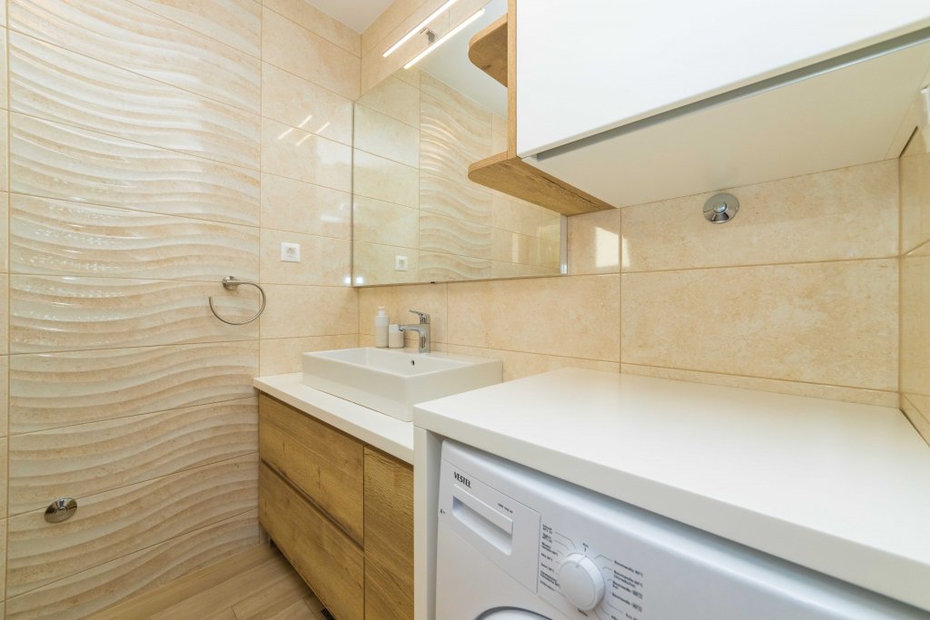 Villa Mila Mare provides everything you will need during your vacation. In its tastefully decorated interior, it consists of 5 fully equipped apartments. One of the amazing, near the beach apartments, is a cute, space full apartment with one bedroom, fully equipped kitchen with a dining room, a living room with a recliner chair for one person, and a sofa bed for two. The villa offers a private parking spot, pool, and grill available to all guests