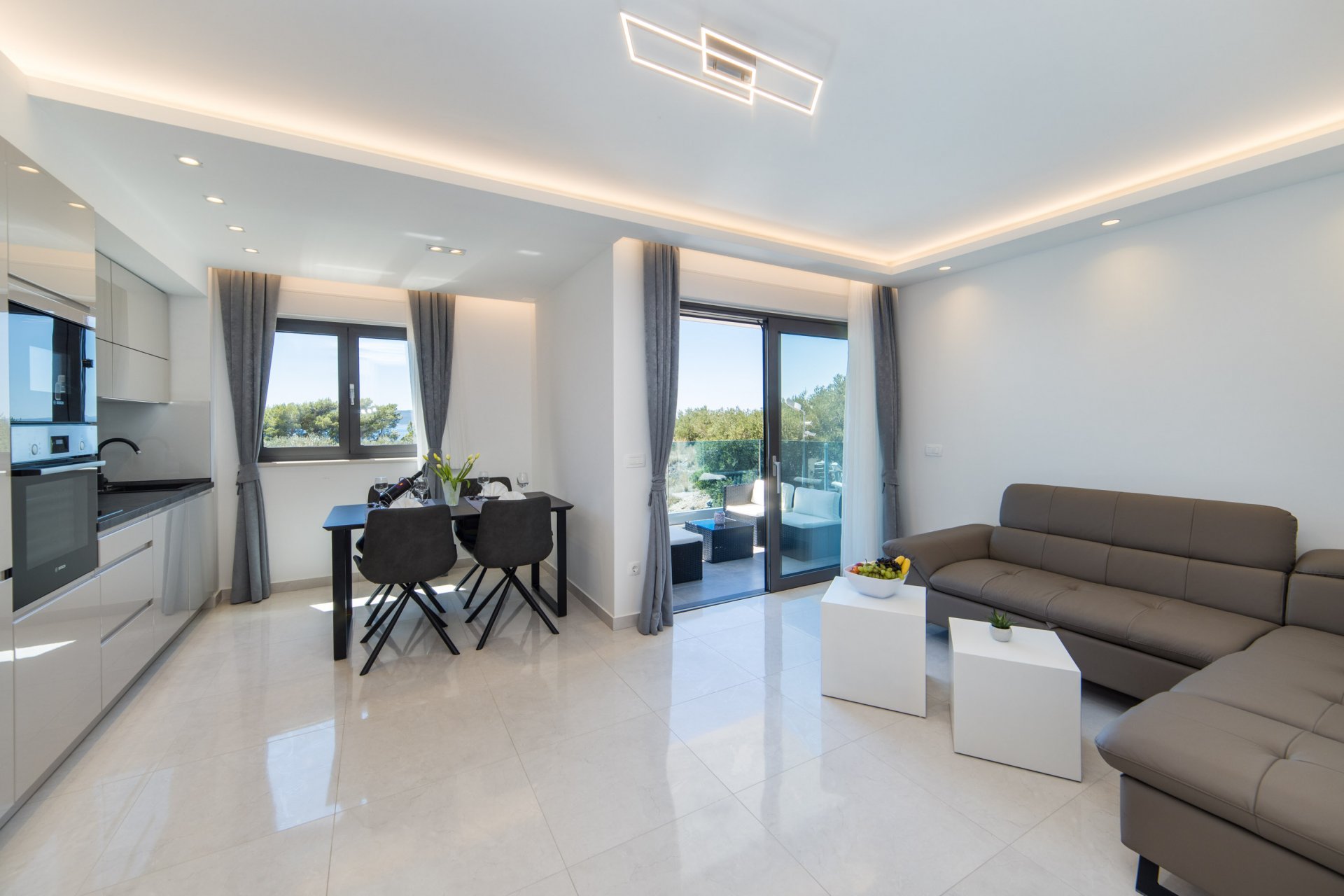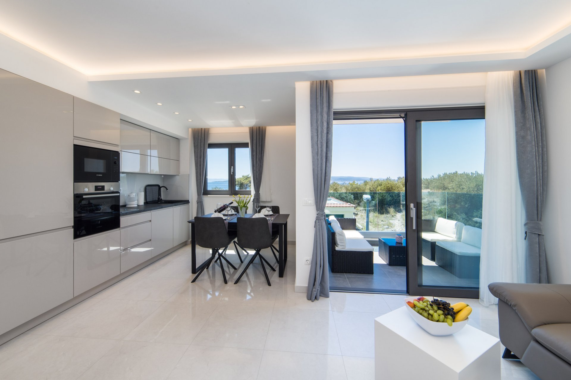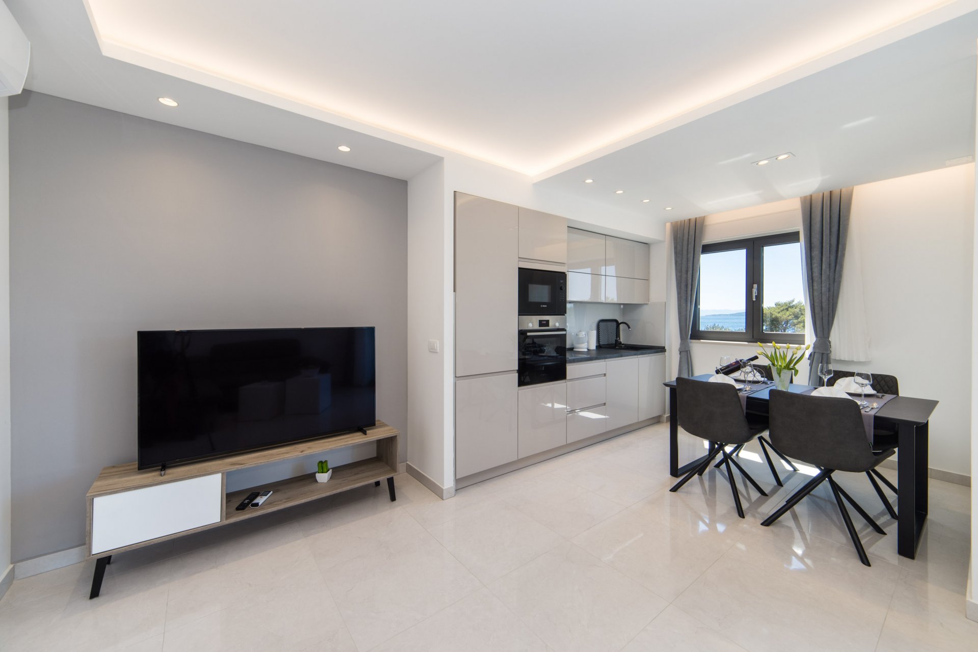 Apartments Sunset Beach are situated in a beautiful coastal place Promajna in Makarska county, surrounded by historical towns and magnificent Islands. The property is located between Split and Dubrovnik with easy access to nearby islands (Hvar, Korčula, Brač). Its location makes Promajna an ideal base for exploring central and South Dalmatia, with most attractions within 2hrs drive. The apartment contains free WiFi, flat-screen SAT TV, as well as an air conditioner. In its 70 m square, it consists of a fully equipped kitchen that will provide you stove, water kettle, dishwasher, freezer, refrigerator, and microwave. There is also a private bathroom at guests' disposal which contains a walk-in shower cabin, hairdryer, and cleansers. There is an extra toilet in the apartment. Guests can enjoy their stay on a balcony with outdoor furniture and a beautiful sea view.
