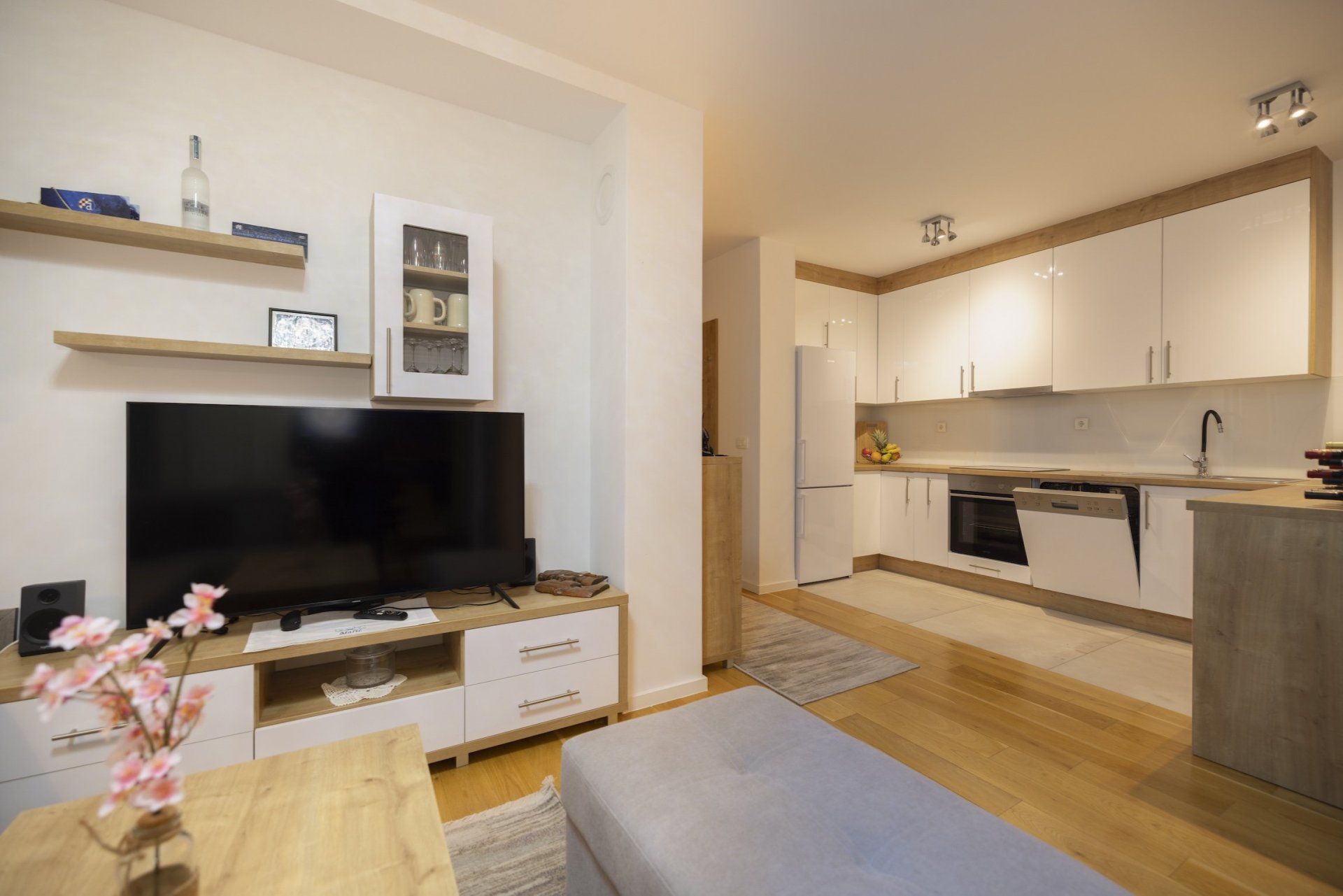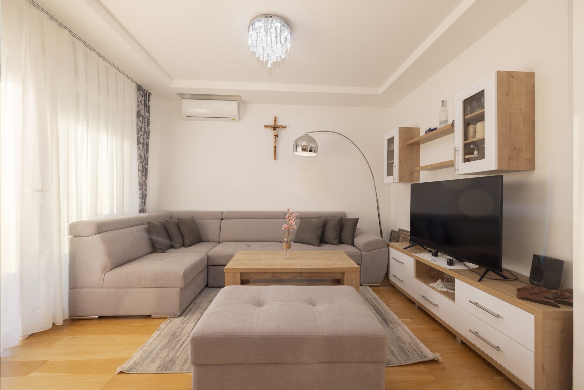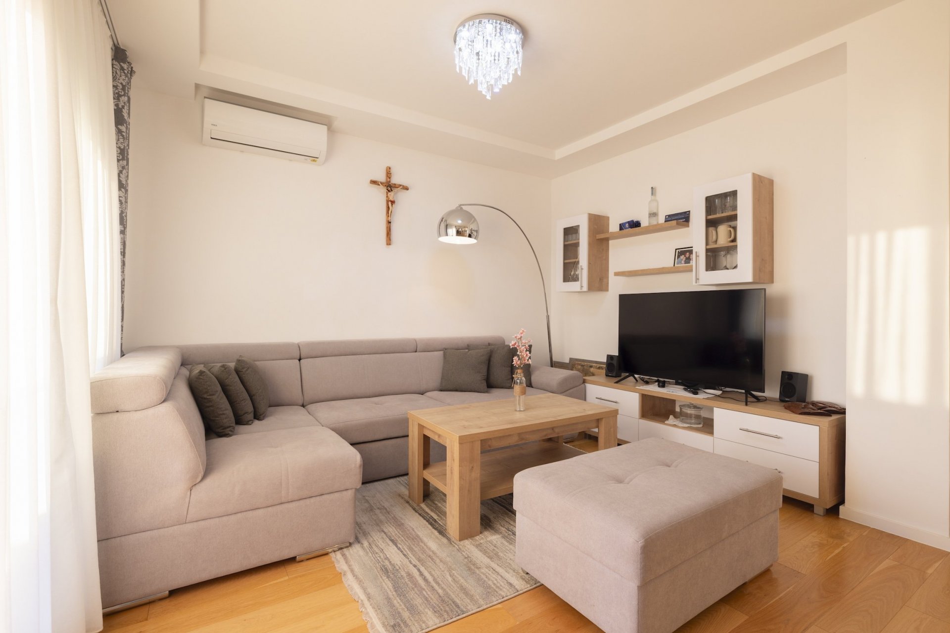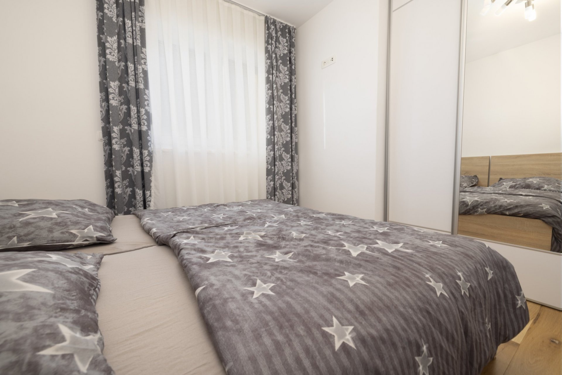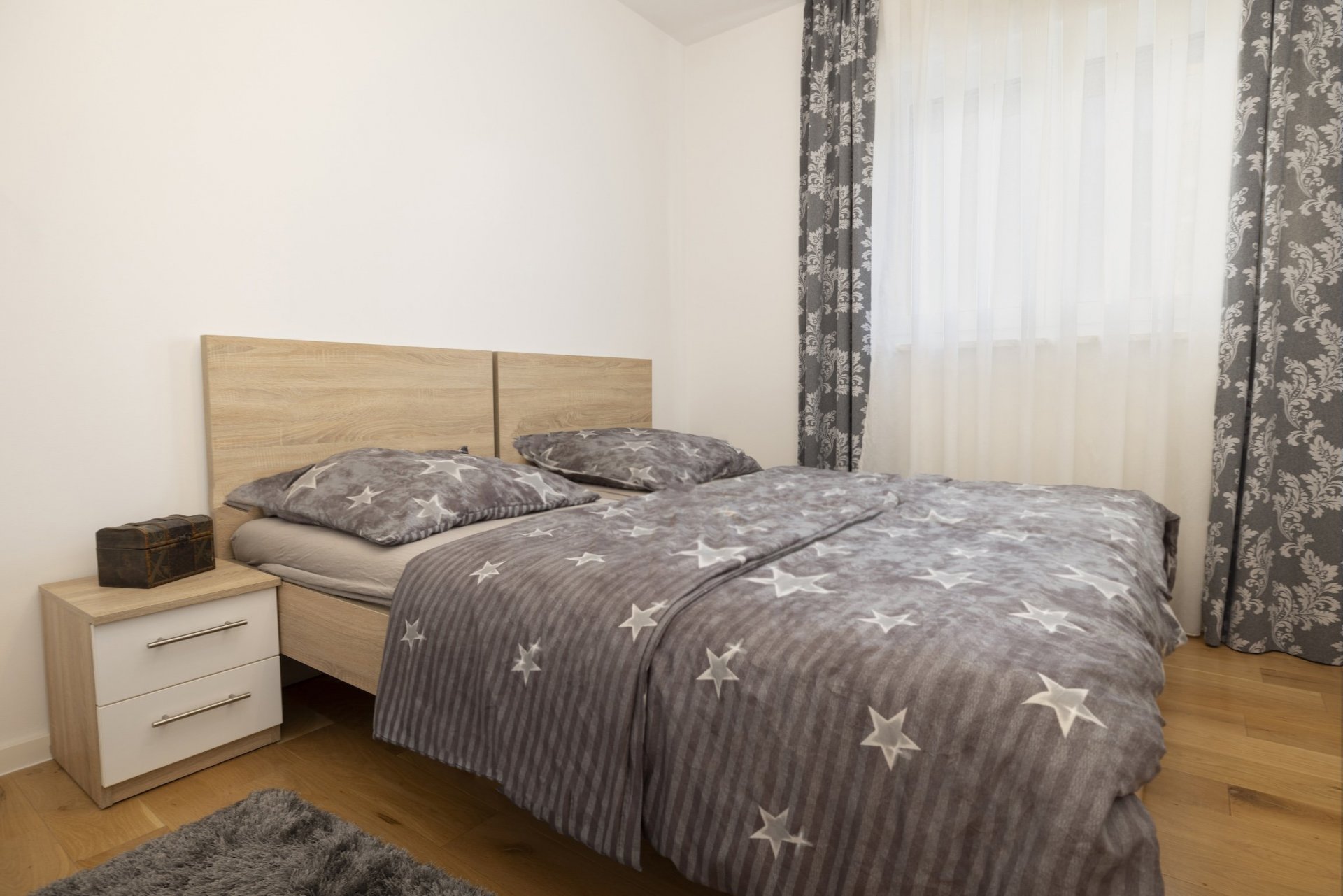 The apartment is located in a beautiful coastal city Makarska, 5 minutes by car from Baška Voda, Tučepi, surrounded by Mountain Biokovo and magnificent Islands. The apartment is located in a Croatian town between Split and Dubrovnik with easy access to nearby Islands. This lovely apartment is situated 1200 meters from the sea and restaurants. Spacious two bedrooms apartment where you can also find a living room that can be used as an extra bedroom as though there is an extendable sofa it can accommodate up to 2 people, 6 people in total.
