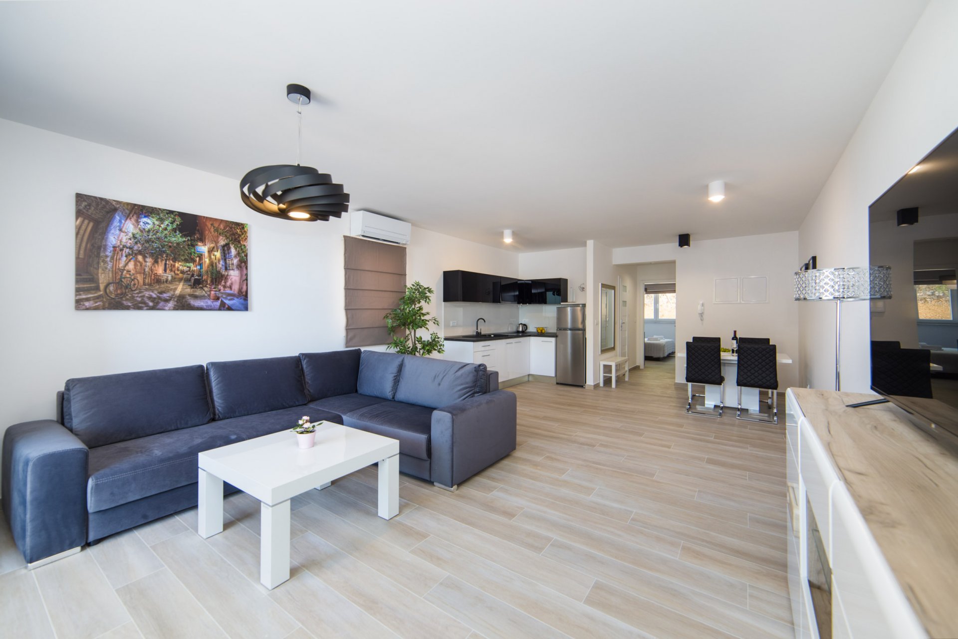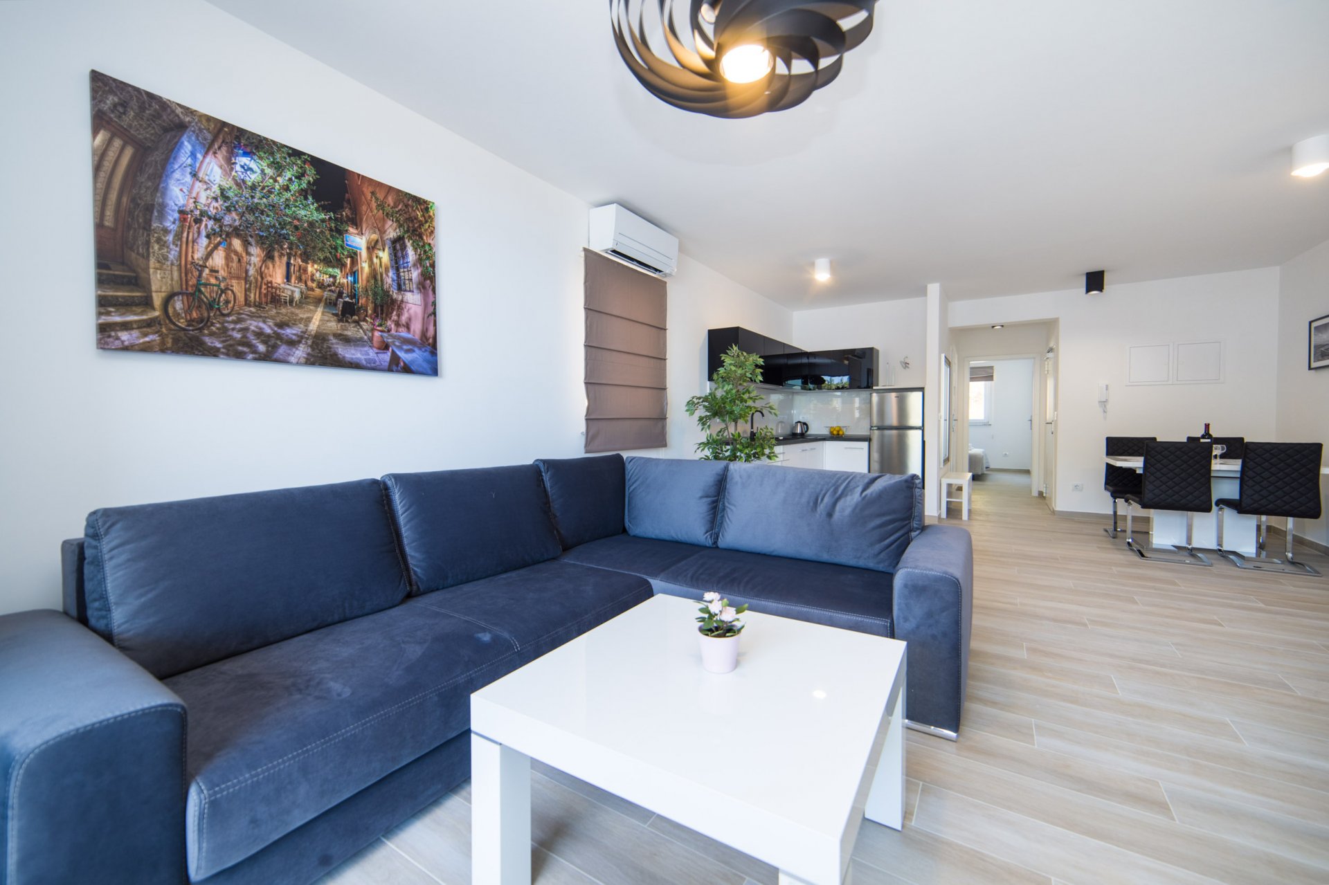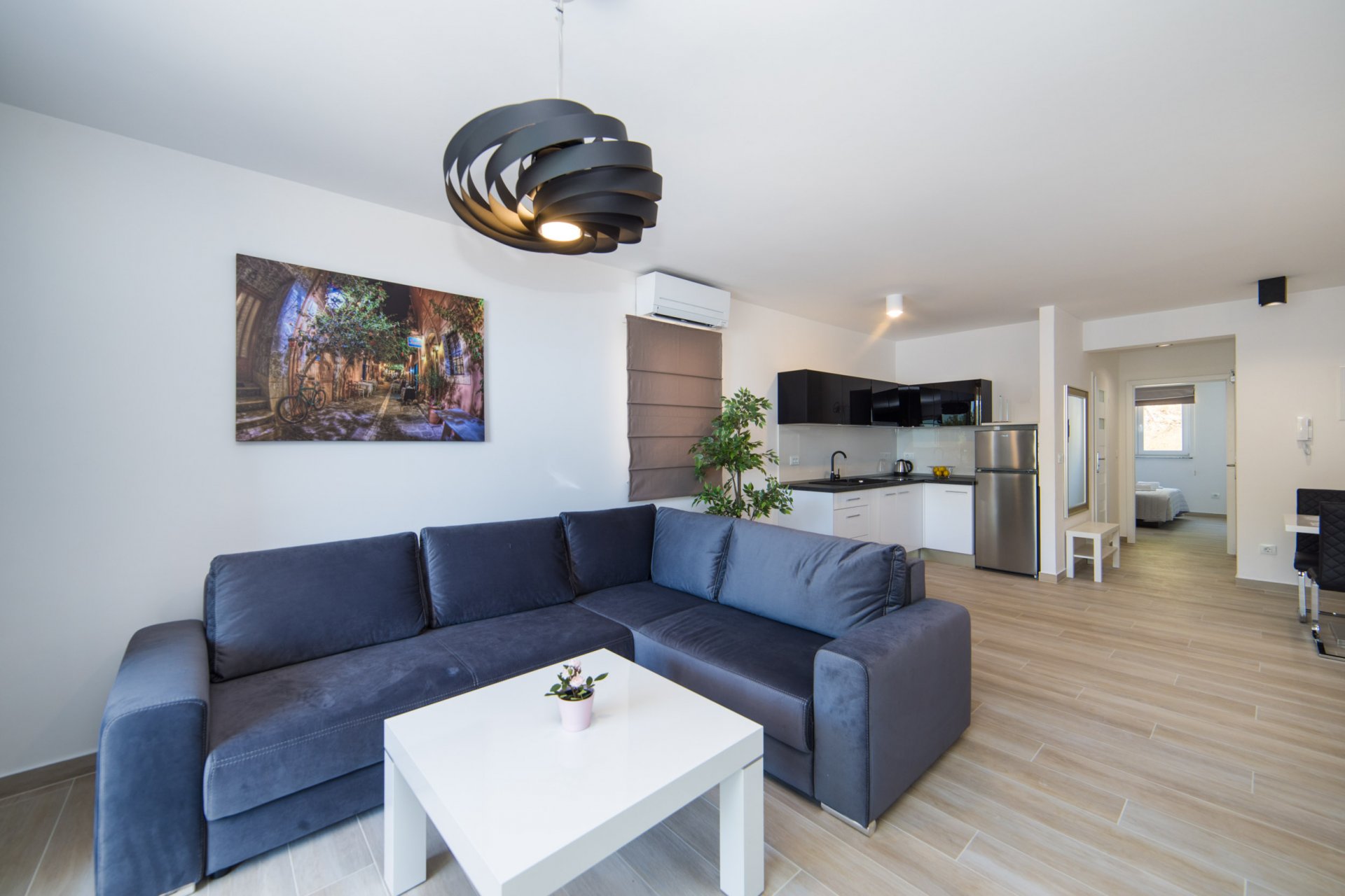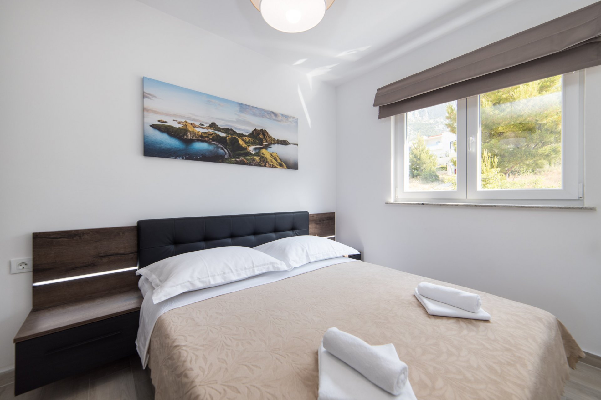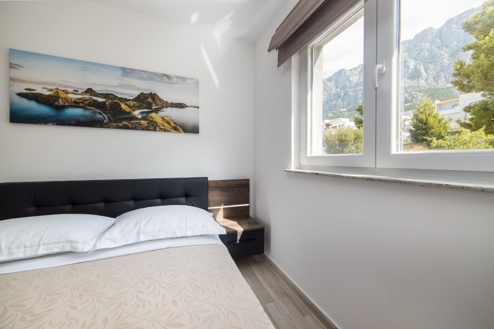This apartment is located in a beautiful coastal city Makarska, 5 minutes by car from Baška Voda, surrounded by Mountain Biokovo and magnificent Islands. Property is located between Split and Dubrovnik with easy access to nearby Islands. This lovely apartment is situated 1600 meters from the sea and restaurants. There you can find equipped kitchen with dining and living area, one bedroom and a bathroom. It can accommodate up to 4 people.
