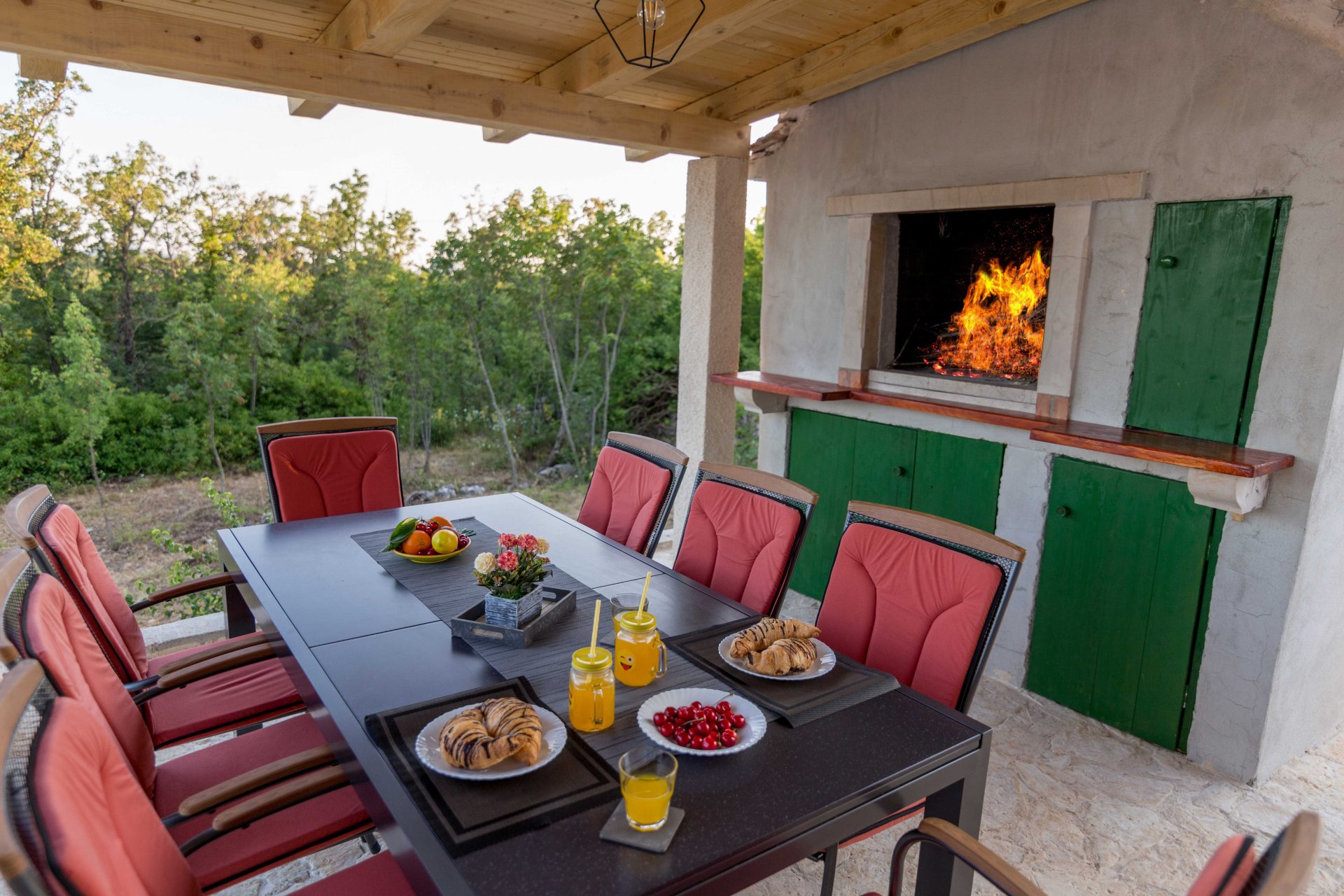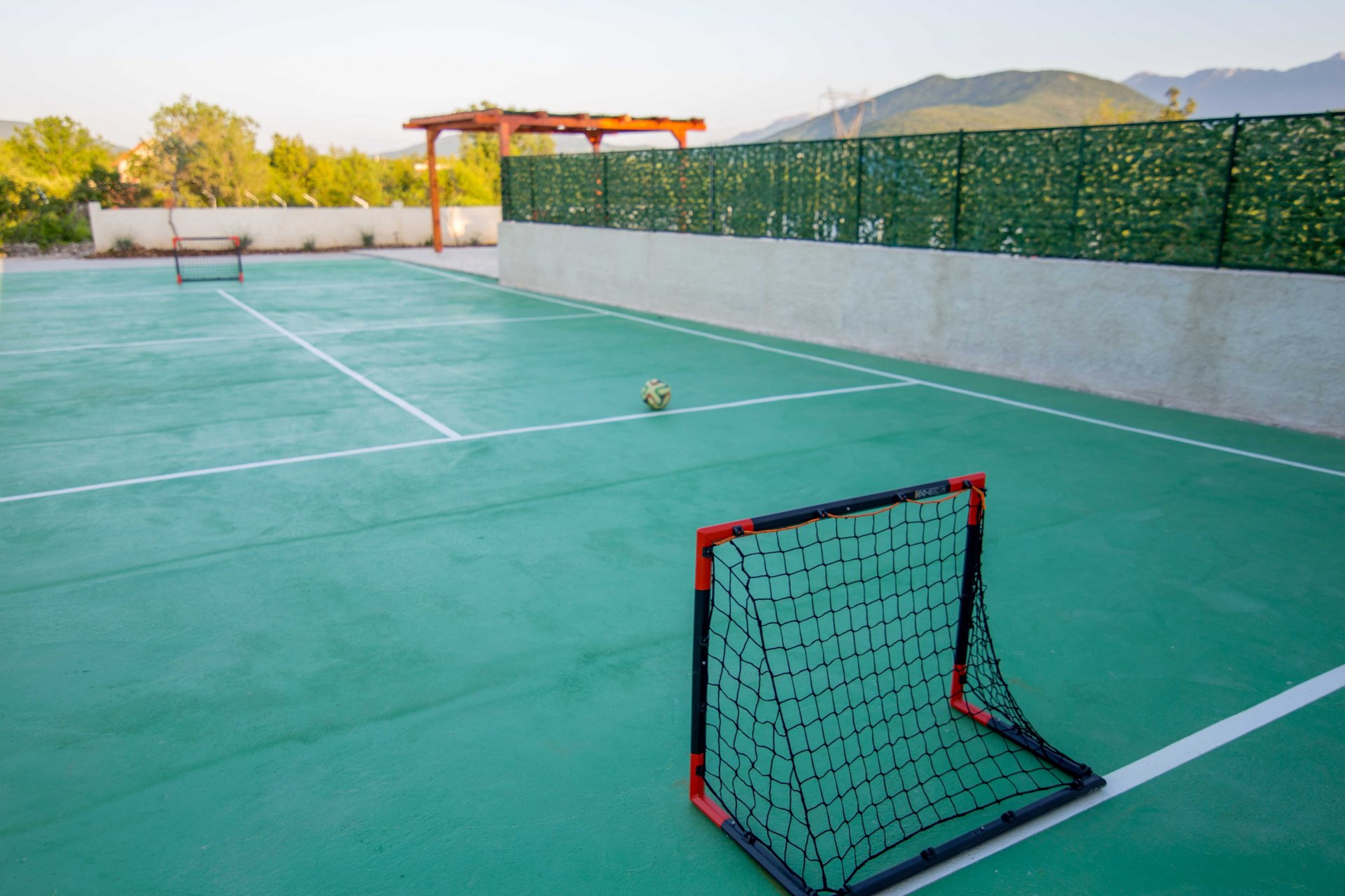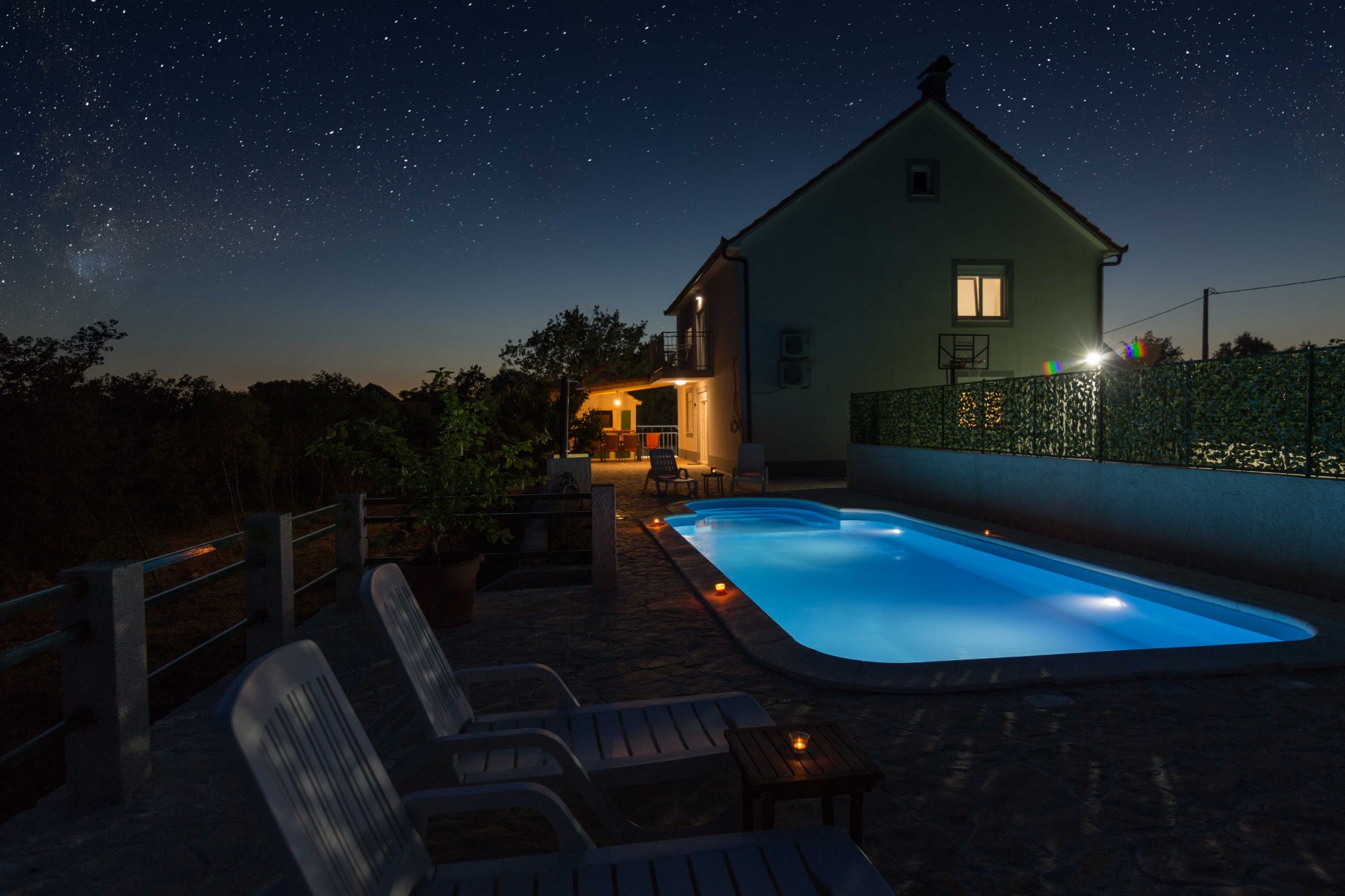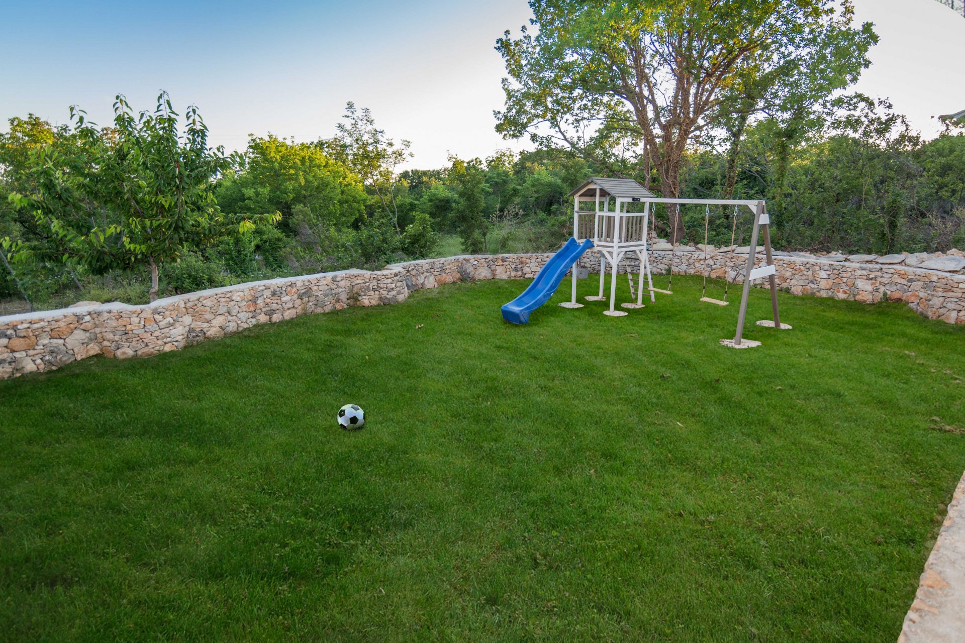 Villa Paloma Blanca, located in Lovreć, is the best choice if you want to spend your vacations in peace and quiet environment, far from the city crowds, and also to have nearby all you need during your holidays. Outdoor swimming pool, BBQ facility, tennis and basketball court and football pitch make this property perfect for a holiday with friends or family. Children's playground with a swing set and a slide is at guests' disposal as are ironing facilities. Free parking is available on site. Washing machine, ironing board and hairdryer are also on guests disposal. Baby cot and high chair are available upon request. Property is just 1 hour driving from the Split and famous promenade Riva Split where you can enjoy beautiful sea view, magnificent sunsets and experience true Dalmatian culture and history. Makarska is just 40 minutes driving from the property. Split Bus Station and Ferry Port, connecting the mainland with various Dalmatian islands, are 58 minutes ride from the apartment, while Split Airport is 73.1 km away. This four-bedroom villa features free WiFi, air-conditioning, and SAT LCD TV, a fully equipped kitchen with a dining area, a living room, so as three private bathrooms, and a separate toilet. The kitchen is equipped with an oven, stove, water kettle, toaster, microwave, refrigerator, coffee maker, and dishwasher. It will also provide you with a lovely furnished terrace and balcony with a garden and pool view. Outdoor swimming pool, BBQ facility, tennis and basketball court, and football pitch make this property perfect for a holiday with friends or family. Children's playground with a swing set and a slide is at guests' disposal as are ironing facilities. Free parking is available on site. The washing machine, ironing board, and hairdryer are also at guests' disposal. Pets are allowed upon request and an additional charge of 5 euros. Baby cot and high chair are available upon request.